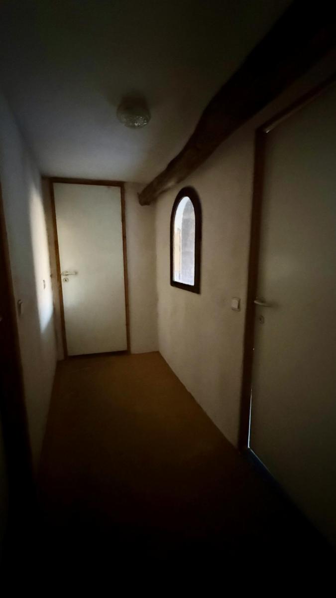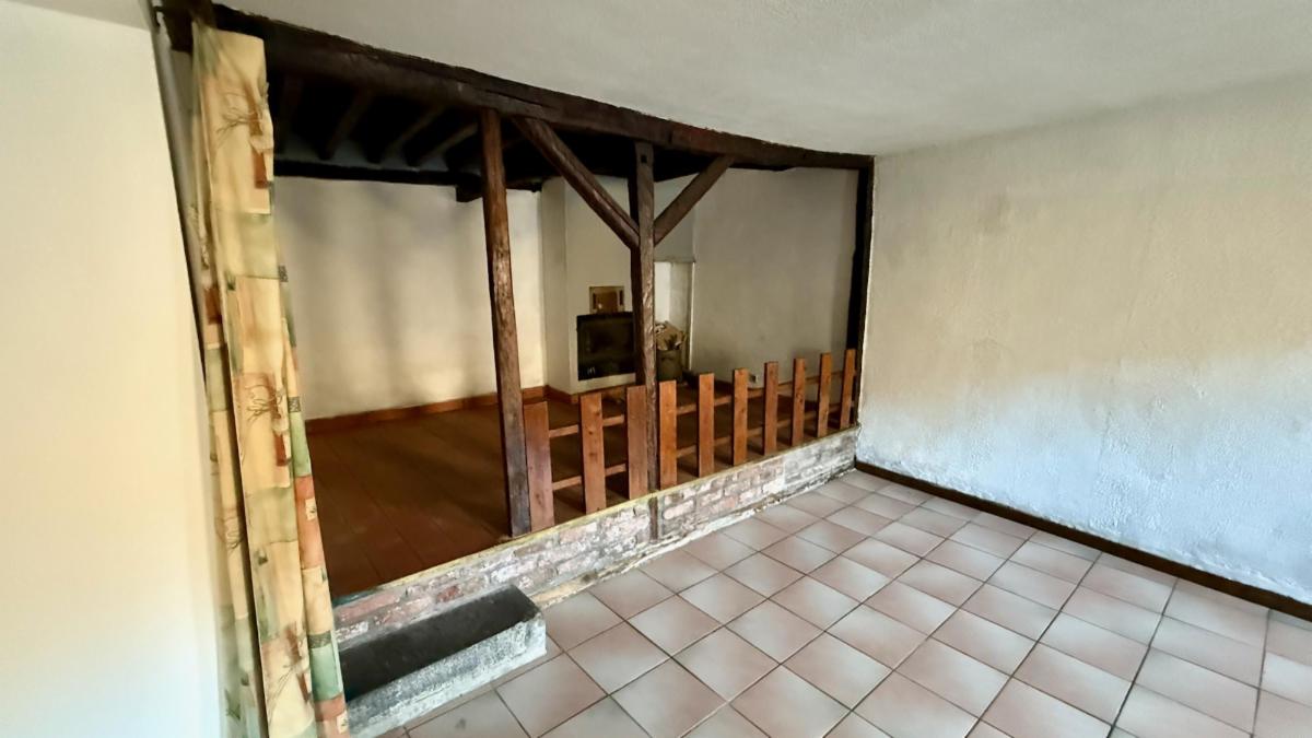 Rez-de-chaussée : Hall d'entrée, salon de caractère en demi-niveau avec poêle, cuisine (accès cabanon), WC indépendant et salle de bain (baignoire).
