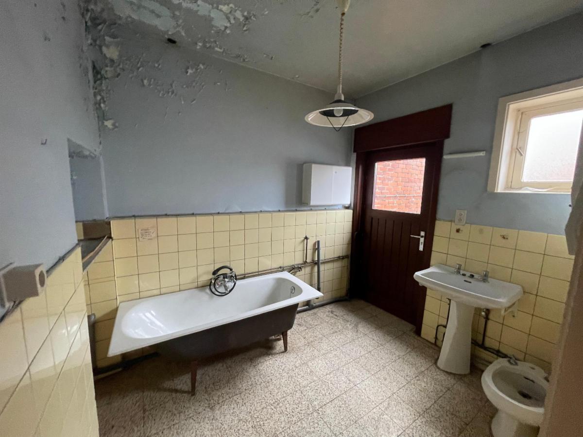 Maison 3 façades à rénover qui se compose au RDC, d’un hall d’entrée, d’une toilette, d’un séjour, d’une cuisine, d’un bureau, d’un hall et d’une salle de bains. Au 1er étage : un hall de nuit, deux chambres et un grenier aménageable. Au sous-sol : une petite cave. En annexe un garage.