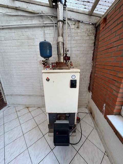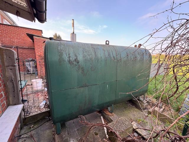 Maison 3 façades comprenant au rez-de-chaussée : un hall d'entrée, un WC séparé, un séjour, une cuisine, une véranda. Au 1er étage : 5 chambres. Au 2ème étage : un grenier. Extérieurs : un garage, un passage latéral, un jardin attenant au bien et un jardin séparé (+/- 7 ares). Equipements : châssis double vitrage avec volets, chauffage central au mazout, citerne à mazout, électricité à refaire. Un chemin passe à l'arrière du jardin attenant à la maison. Visites sur rendez-vous pris en l'Etude.