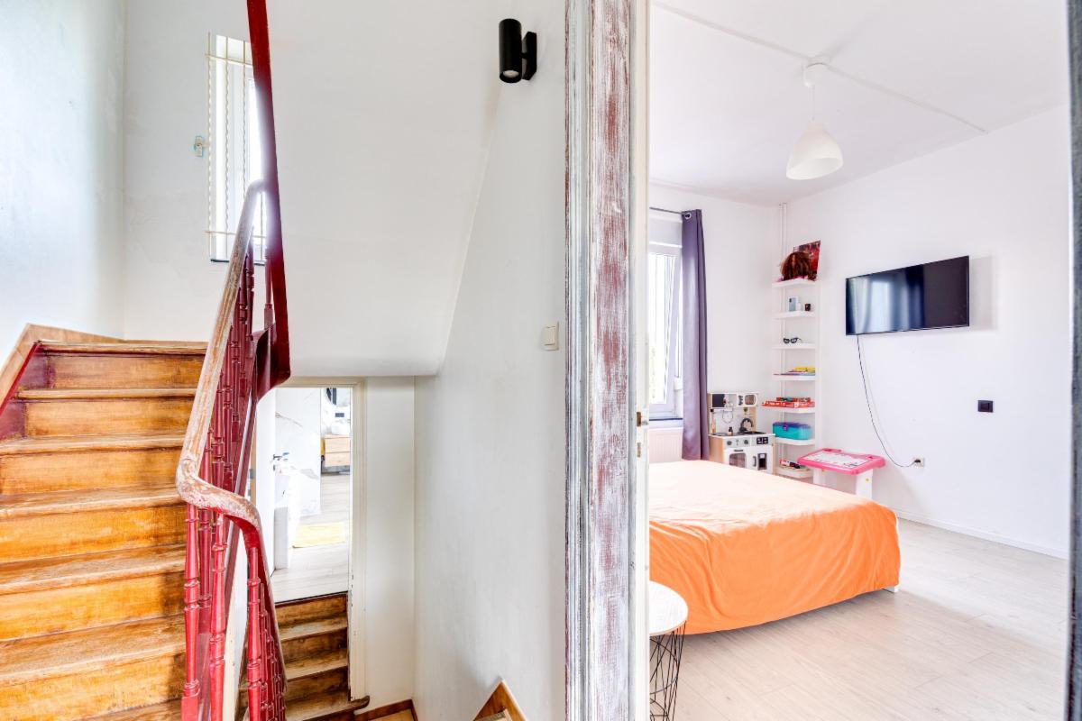 Aux étages, la maison dispose de 5 chambres réparties sur deux niveaux : deux au premier étage et trois au deuxième étage, aménagées dans l’ancien grenier.