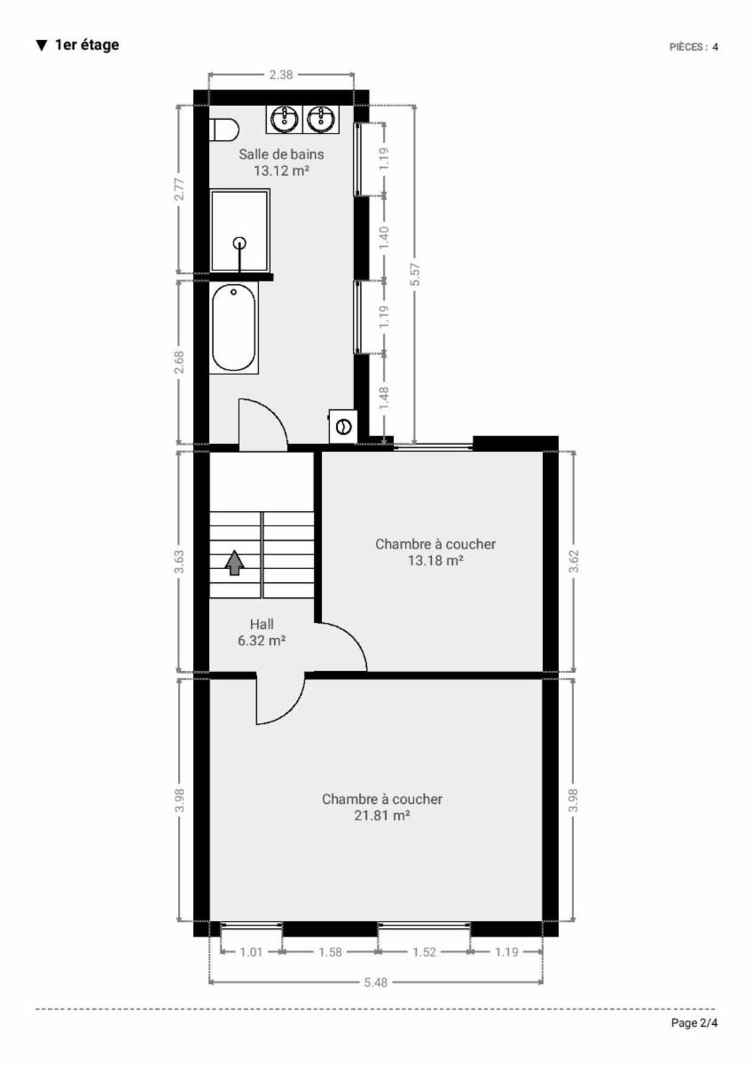 La salle de bains, située à l’entresol, est équipée d’une baignoire, d’une douche, d’un WC et de deux éviers.