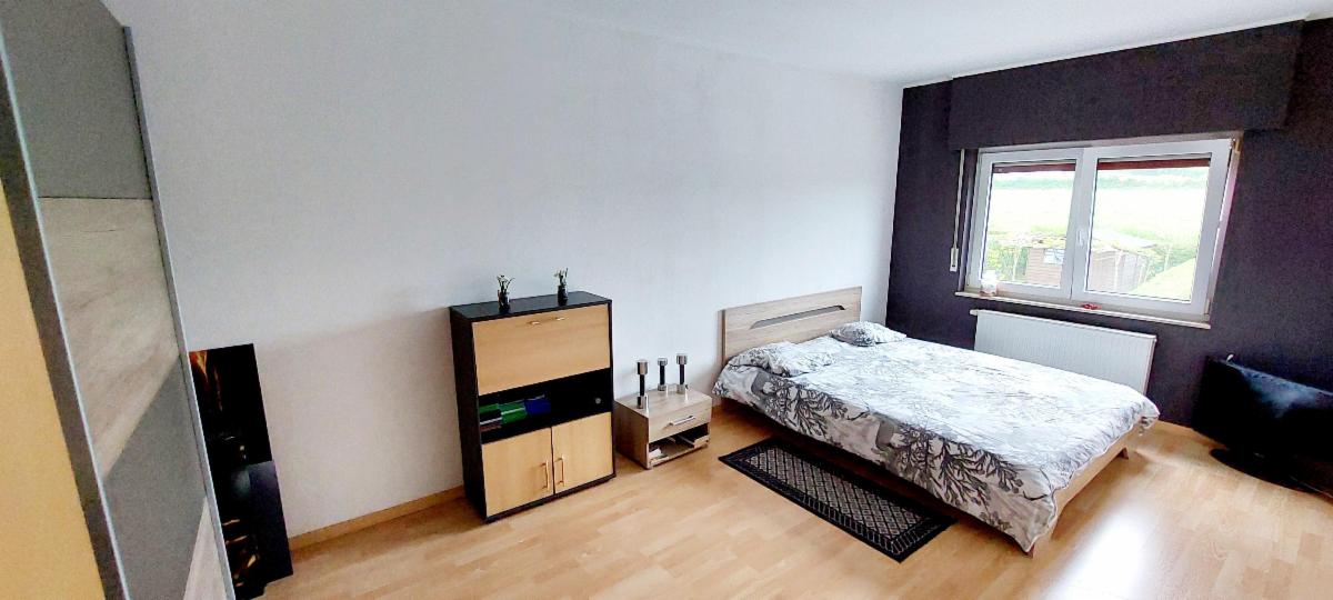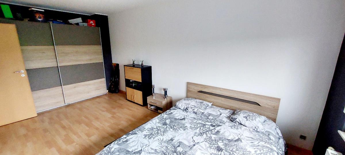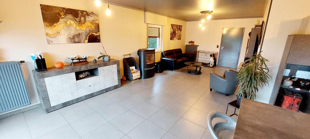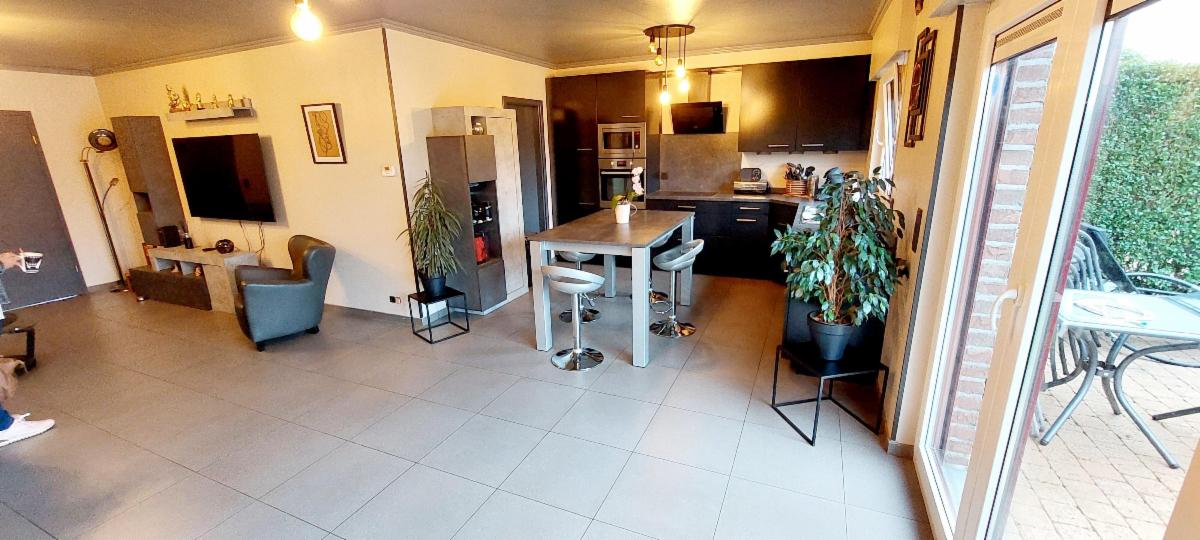 - au rez de chaussée: hall d'entrée, living, cuisine équipée, wc, garage, jardin