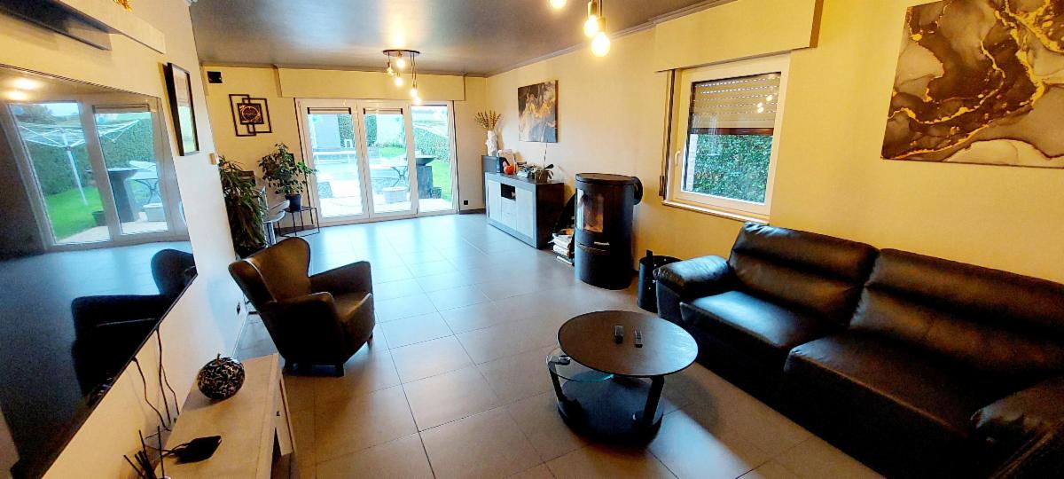 Idéalement située, dans un clos et entourée d'espaces verts, cette maison se compose de: