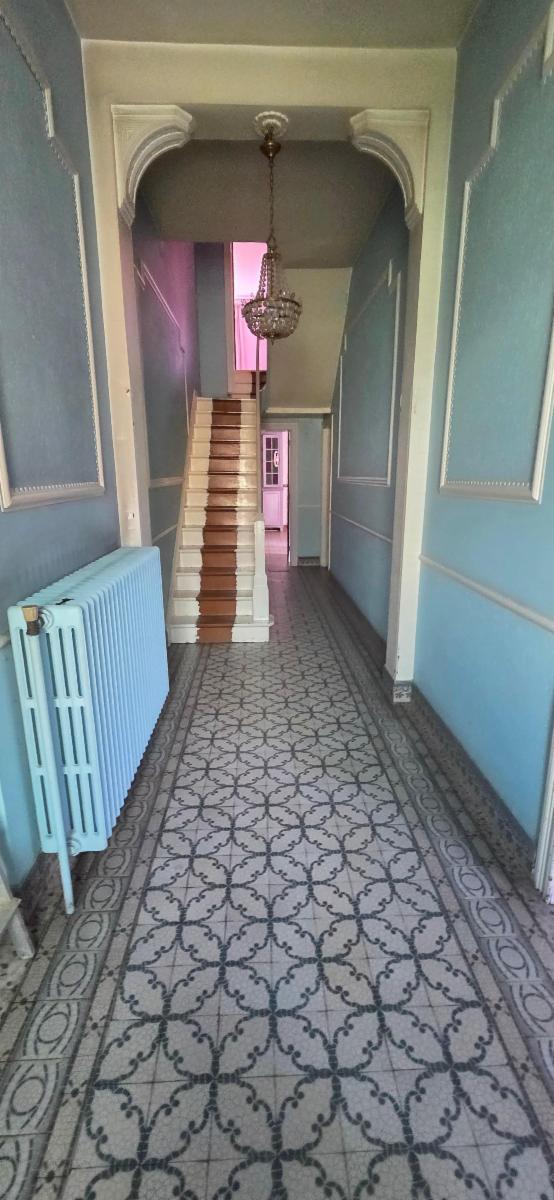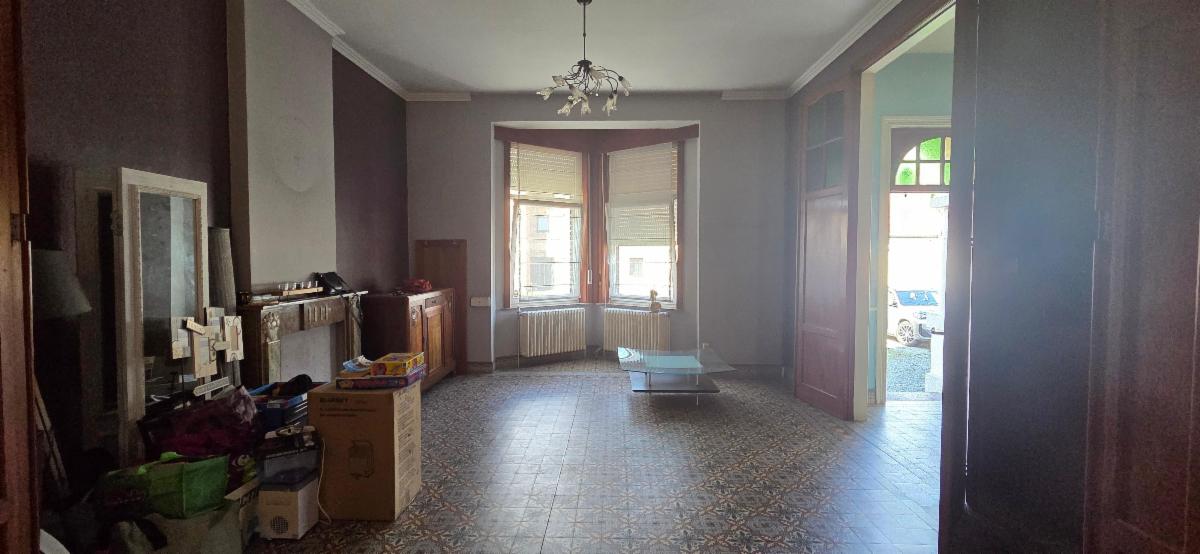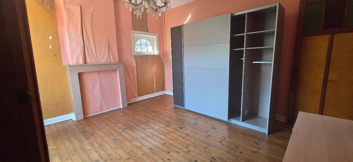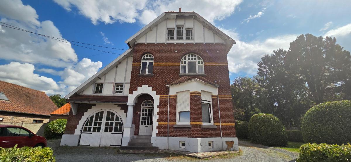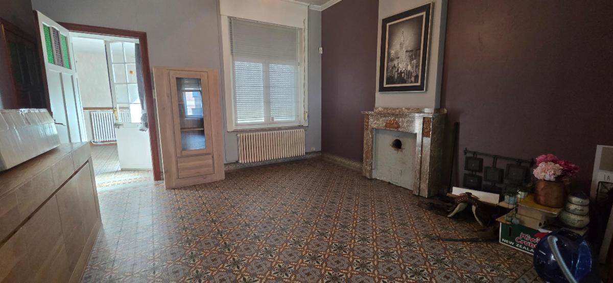 Une jolie maison 4 façades de caractère, à restaurer, située à Stambruges, composée au rez-de-chaussée d’un hall d’entrée, d’un grand salon - salle à manger (deux pièces communicantes avec deux cheminées), d’une cuisine semi-équipée (four, taques de cuisson, meuble évier), d’une salle de douche (douche et meuble lavabo), d’un WC séparé, et à l’étage de 4 chambres dont l’une est équipée d’un WC et d’un lavabo. Au deuxième étage : grand grenier aménageable avec possibilité de faire plusieurs chambres ou une suite avec dressing.