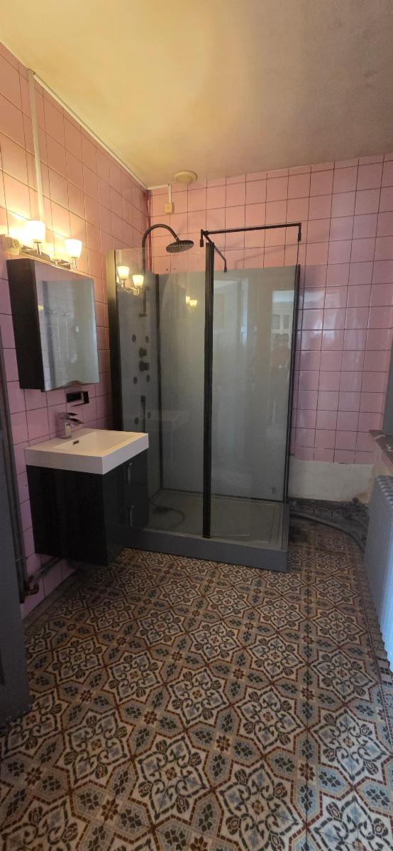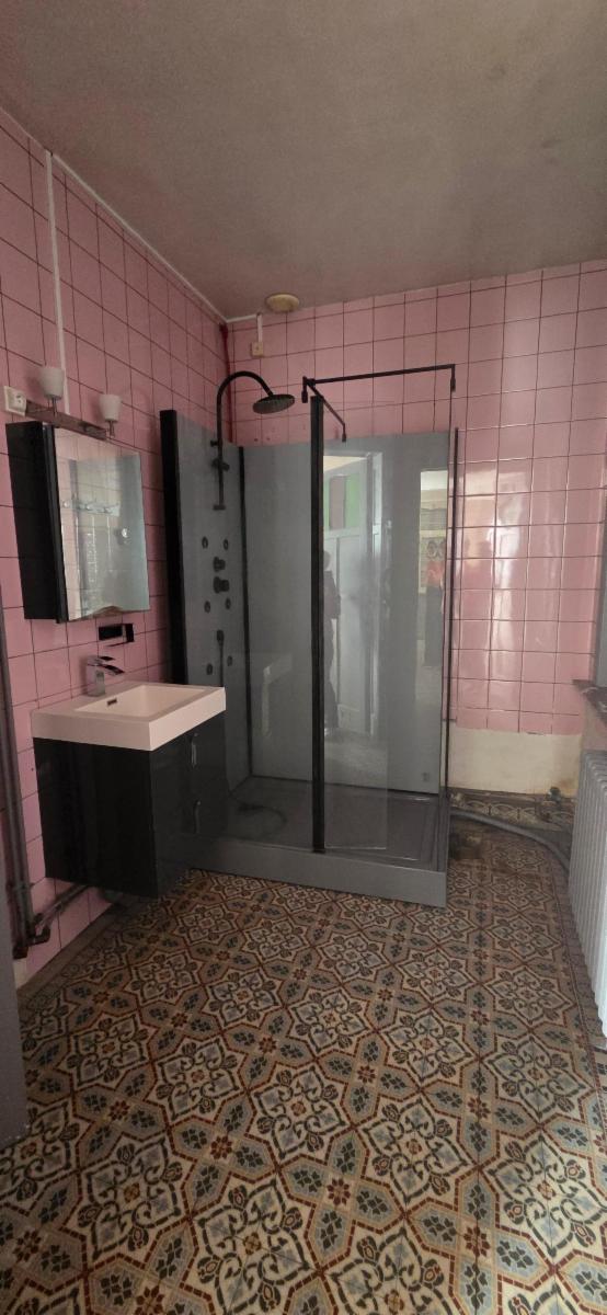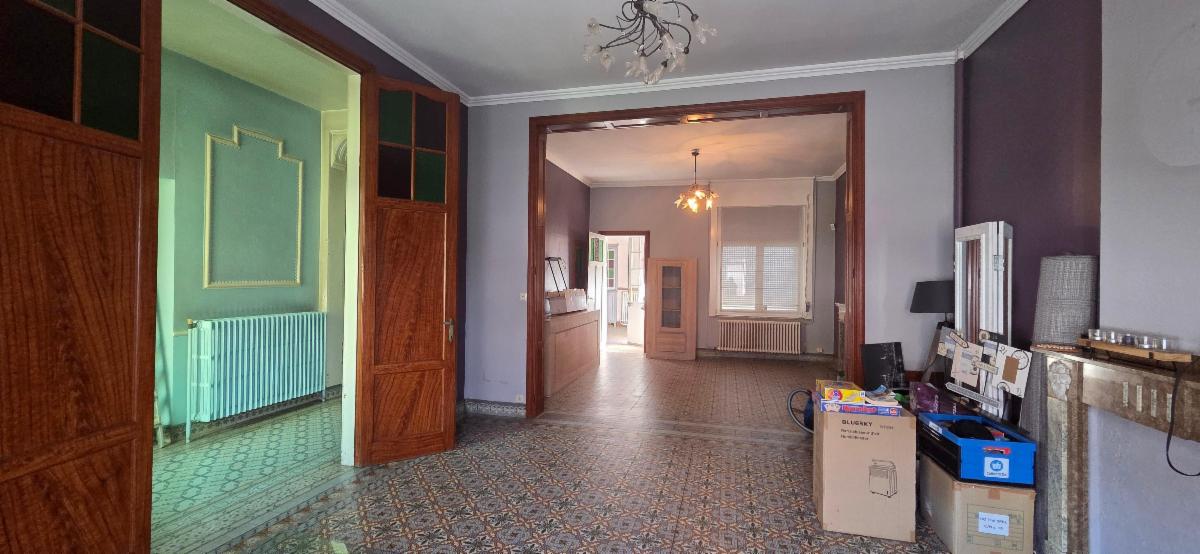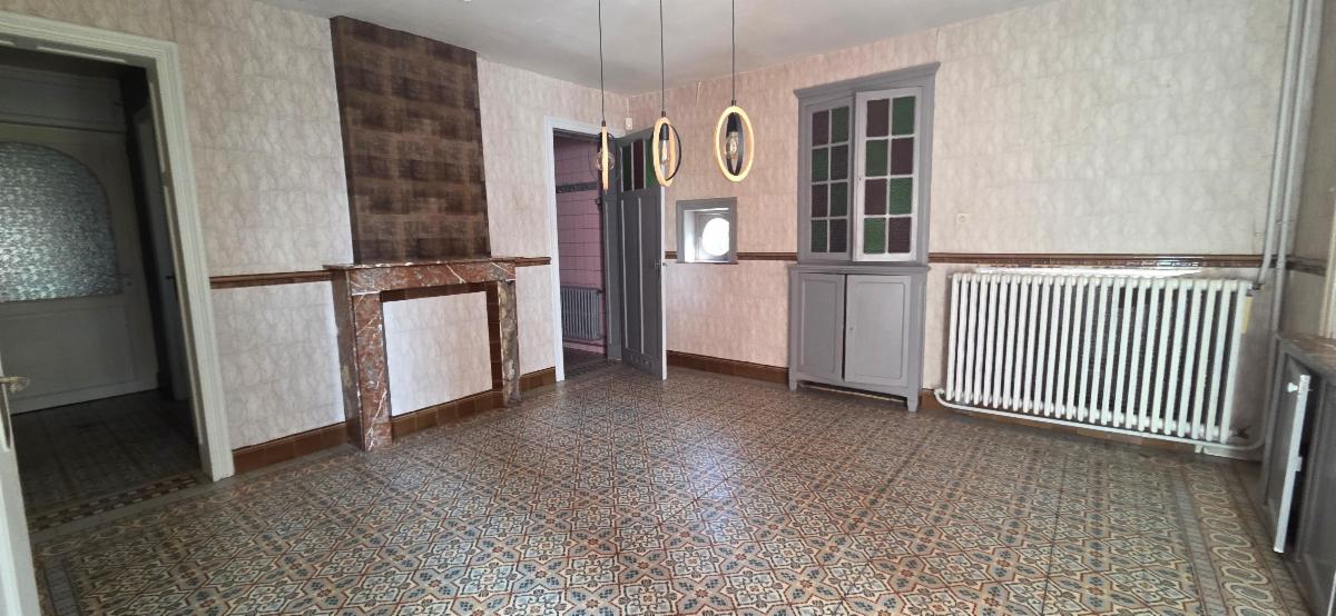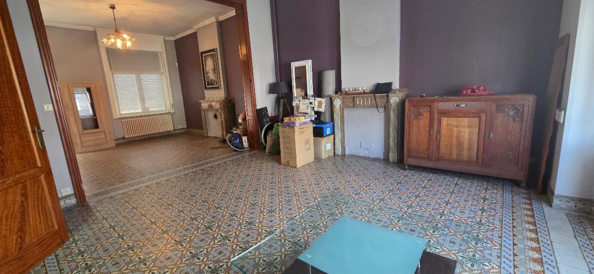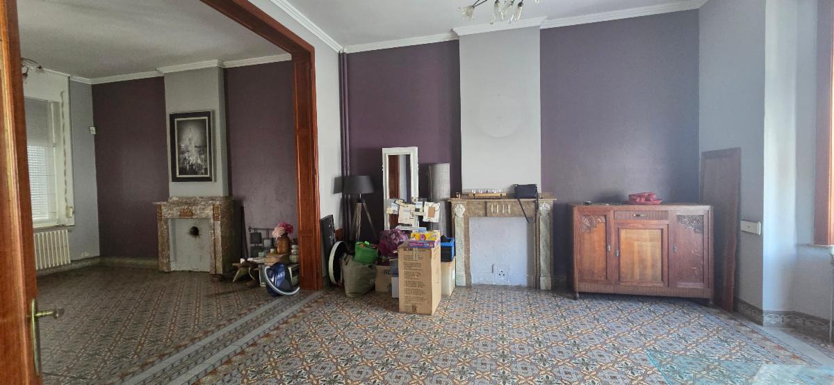 Une jolie maison 4 façades de caractère, à restaurer, située à Stambruges, composée au rez-de-chaussée d’un hall d’entrée, d’un grand salon - salle à manger (deux pièces communicantes avec deux cheminées), d’une cuisine semi-équipée (four, taques de cuisson, meuble évier), d’une salle de douche (douche et meuble lavabo), d’un WC séparé, et à l’étage de 4 chambres dont l’une est équipée d’un WC et d’un lavabo. Au deuxième étage : grand grenier aménageable avec possibilité de faire plusieurs chambres ou une suite avec dressing.