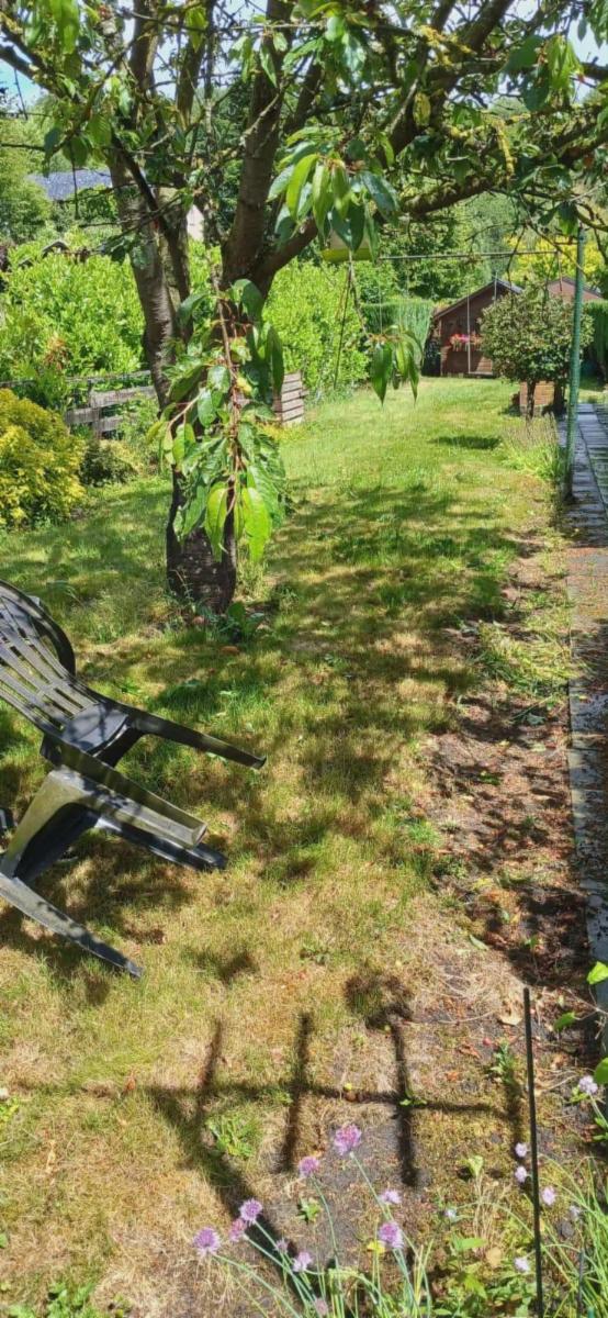 Le jardin, agréable et bien proportionné, est complété par un abri situé en fond de parcelle, pratique pour le stockage d’outils ou de matériel.