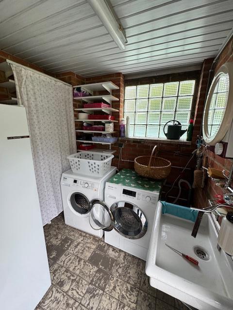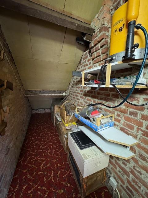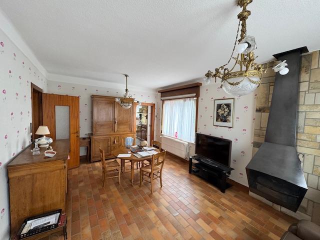 Maison 4 façades de plain-pied en bon état général et habitable rapidement. Elle comprend au rez-de-chaussée : un hall d'entrée, un salon, une cuisine, un bureau, une buanderie, une salle de bains, deux chambres. A l'étage : un grand grenier aménageable (dont les meubles restent). Sous-sol : caves et chaudière en fin de course. Extérieurs : un garage pour deux voitures en longueur, un beau jardin. Equipements : Système d'alarme, citerne d'eau de pluie, châssis double vitrage équipés de volets dont l'un est électrique, raccordement à l'égout, feu au bois fonctionnel avec cheminée tubée, système de chauffage central au mazout avec cuve de 2.700 litres. Visites sur rendez-vous.