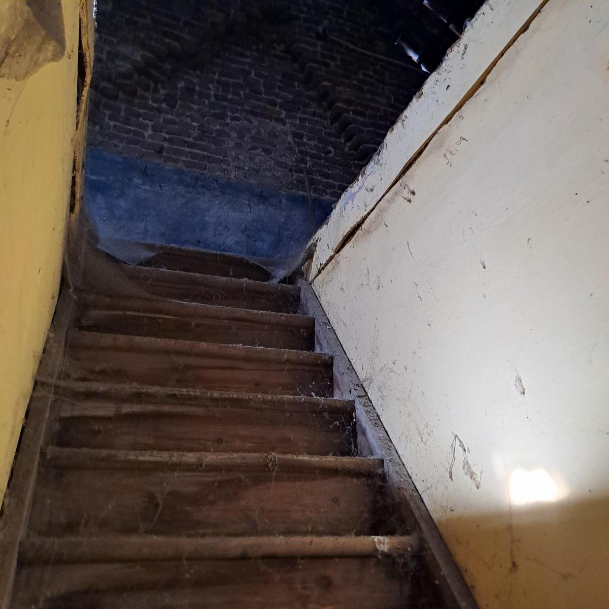 Maison d'habitation comprenant au SS : une cave ; au REZ : un salon, une salle à manger, une cuisine non équipée, une salle de bain ; ET : 1 petite chambre à l’avant de la maison (pas châssis DV) et 1 petite chambre à l’arrière de la maison comprenant des châssis DV avec des volets et un grenier ( toiture non isolée). EXT : une petite cour. DIVERS : chauffage au gaz, corniche à refaire, raccordement à l’égout et au gaz.
