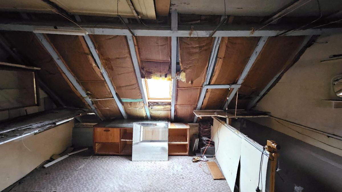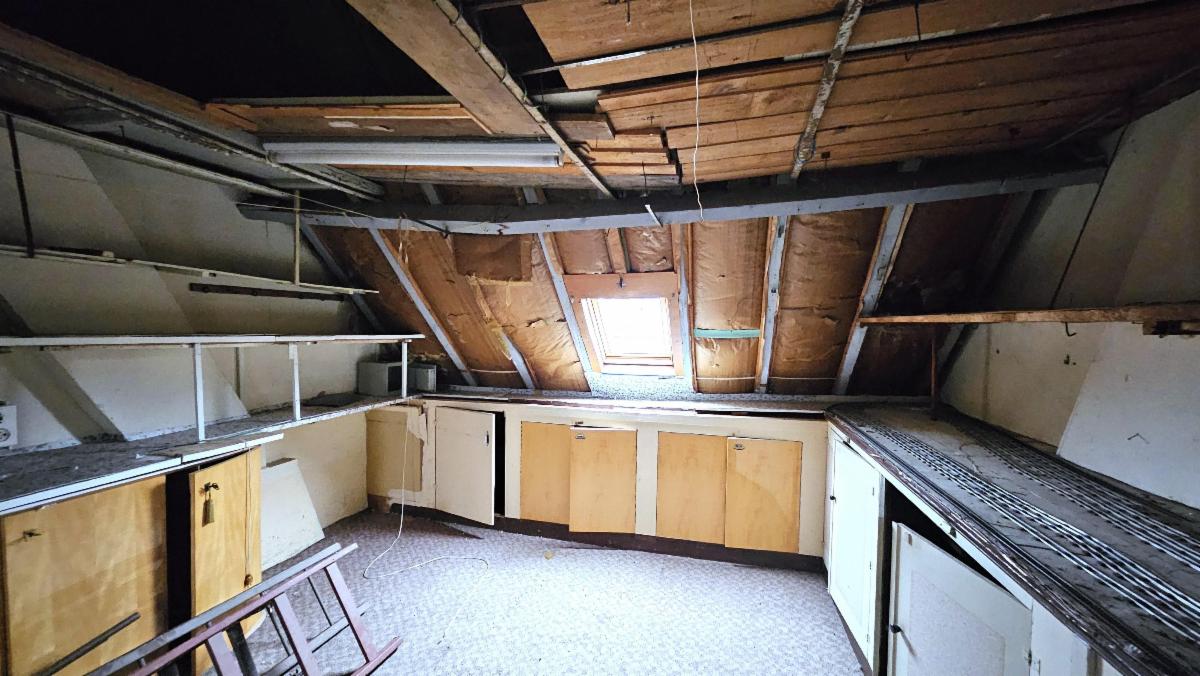 2e étage : Un grenier sous combles spacieux, toiture isolée, menuiserie de toiture à rénover;