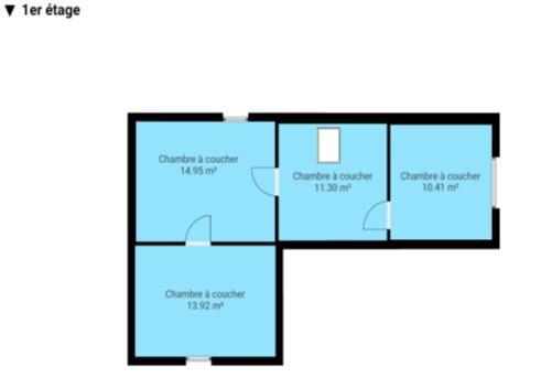 1er étage : deux chambres, un bureau (ou petite chambre d’appoint), palier desservant les pièces de nuit;