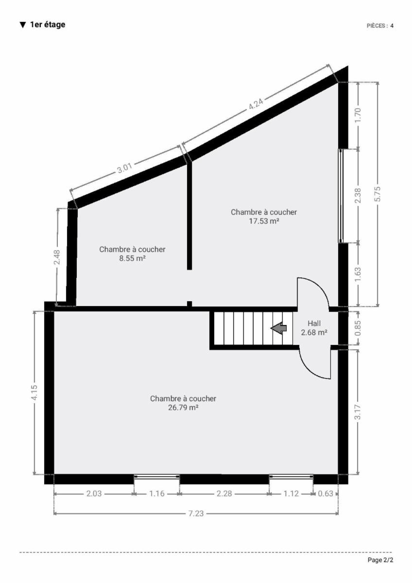 - Au premier étage : d'un hall et de trois chambres à coucher