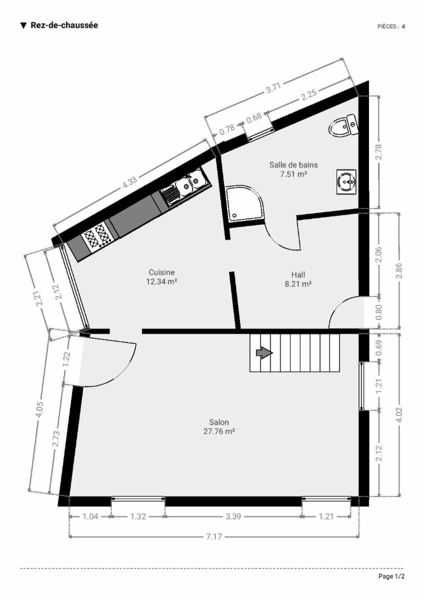 - Au rez-de-chaussée : d'un hall d'entrée, d'une salle de bains, d'une cuisine et d'un salon