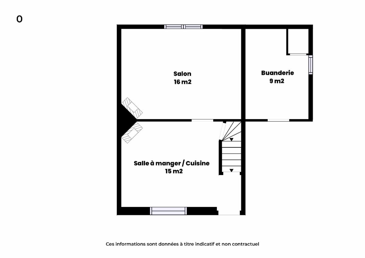 Aspects techniques: Chauffage via un foyer au gaz (tank à gaz dans le jardin), châssis en bois simple vitrage.