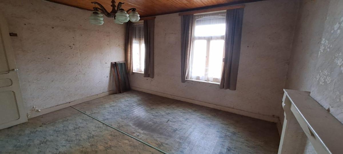 Maison d'habitation à rénover à ATH, avec garage et jardin sise Chaussée de Mons, 349, sur et avec 2 ares 20 ca, comprenant : caves en sous-sol, living, pièce arrière, cuisine sommaire, salle d'eau, 3 chambres et grenier aménageable à l'étage. Cour couverte, jardin et garage au fond, accessible par la rue de Scamps. Electricité non conforme, simple vitrage avec châssis à remplacer. Pas de système de chauffage, donc pas de PEB.