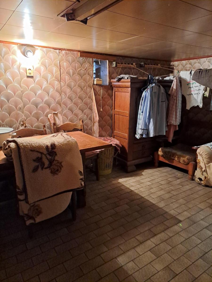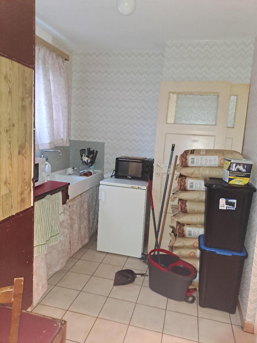 Maison à rafraîchir vendue avec son contenu (meubles et objets encombrants) comprenant: hall d'entrée, wc séparé, salon, salle à manger, poêle à pellets récent, cuisine à rénover. ET: 3 chambres, une salle de bains à rénover. SS: cuisine cave aménagée en pièces de vie et accès jardin. Garage séparé sur le côté gauche et jardin. Egouttage à revoir et pas de raccordement au gaz. Electricité à rénover totalement.