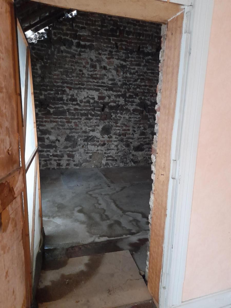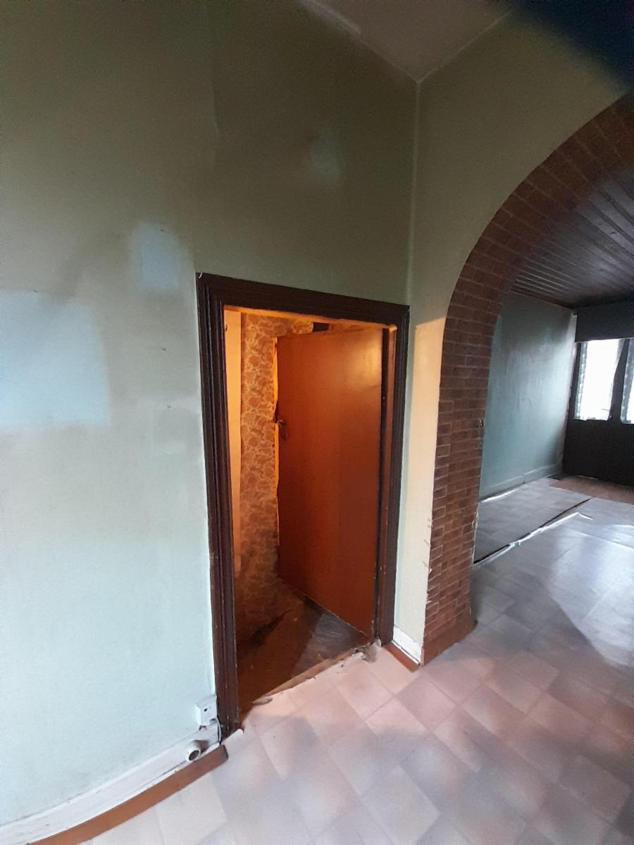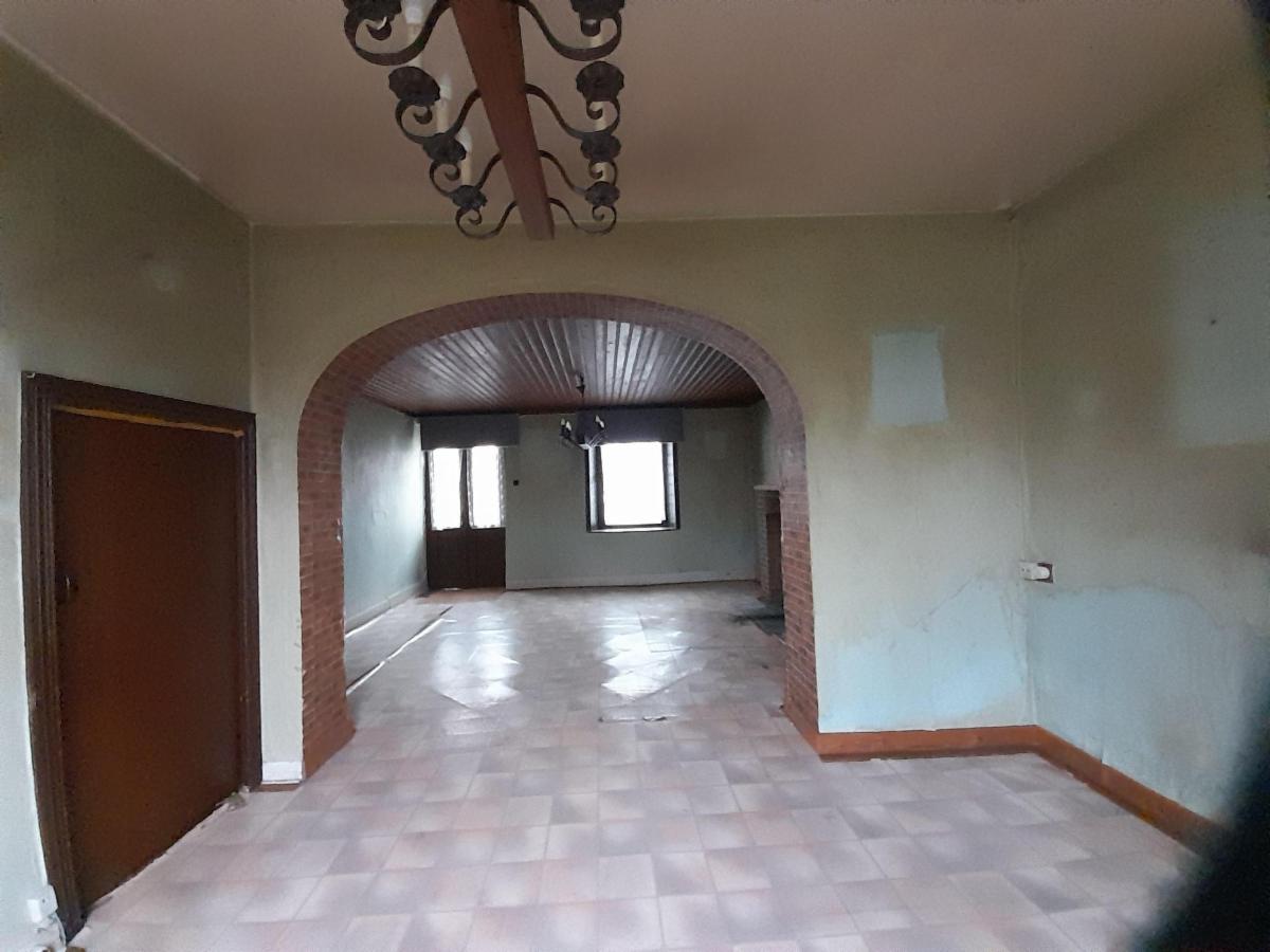 Maison d'habitation mitoyenne. Composition : SOUS-SOL : une cave ; REZ-DE-CHAUSSEE : petit hall d'entrée, cuisine à aménager, living, salle de bains avec wc ; PREMIER ETAGE : deux chambres ainsi qu'un grenier aménageable accessible par l'une des chambres; EXTERIEUR : cour avec remise et grand jardin.