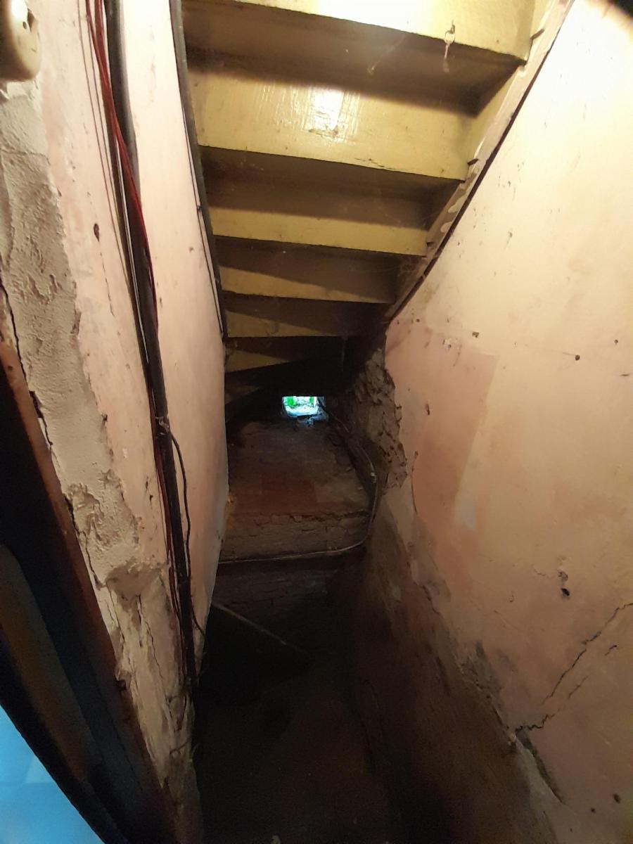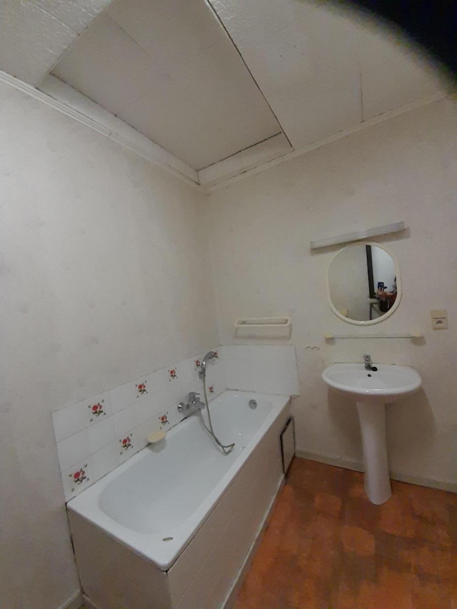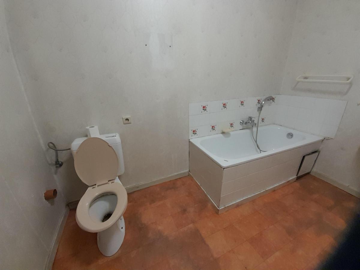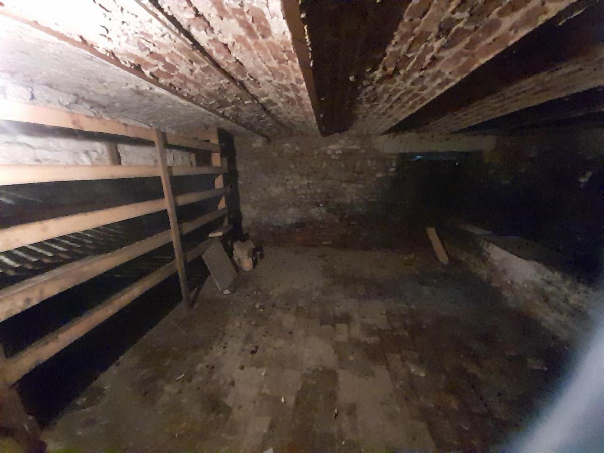 Maison d'habitation mitoyenne. Composition : SOUS-SOL : une cave ; REZ-DE-CHAUSSEE : petit hall d'entrée, cuisine à aménager, living, salle de bains avec wc ; PREMIER ETAGE : deux chambres ainsi qu'un grenier aménageable accessible par l'une des chambres; EXTERIEUR : cour avec remise et grand jardin.