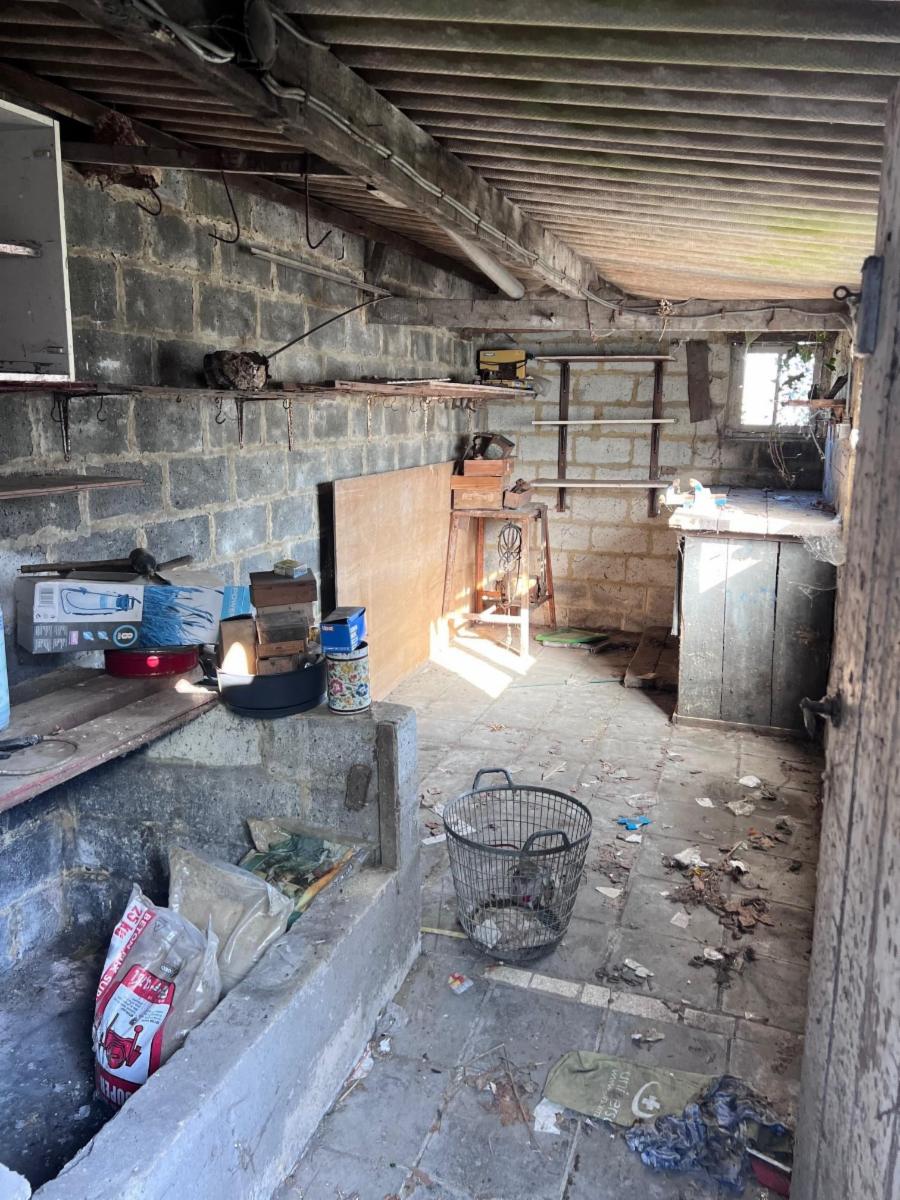 Extérieurs : cour couverte, remises, jardin, passage latéral piéton