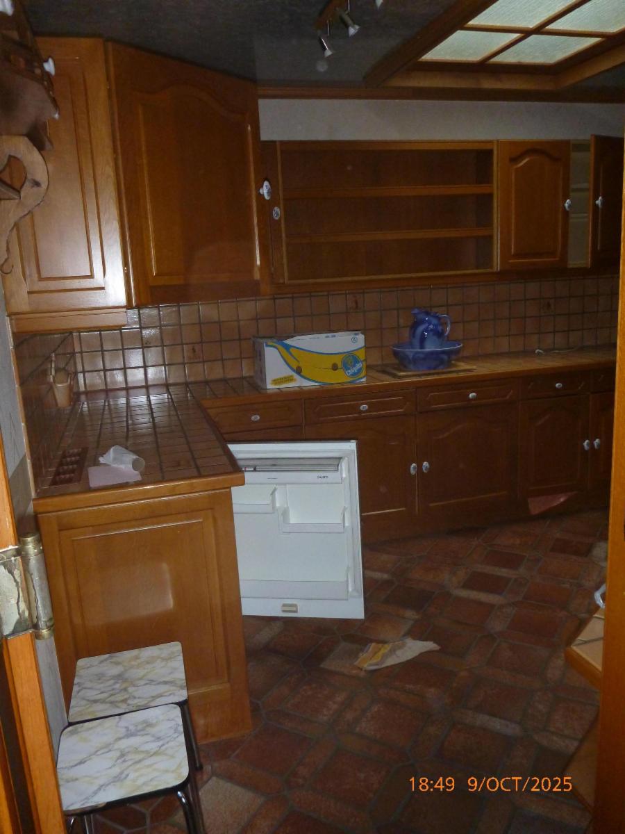 Rez : Hall, living, cuisine équipée, sdb (wc, évier, baignoire) - 1 chambre moyenne et buanderie