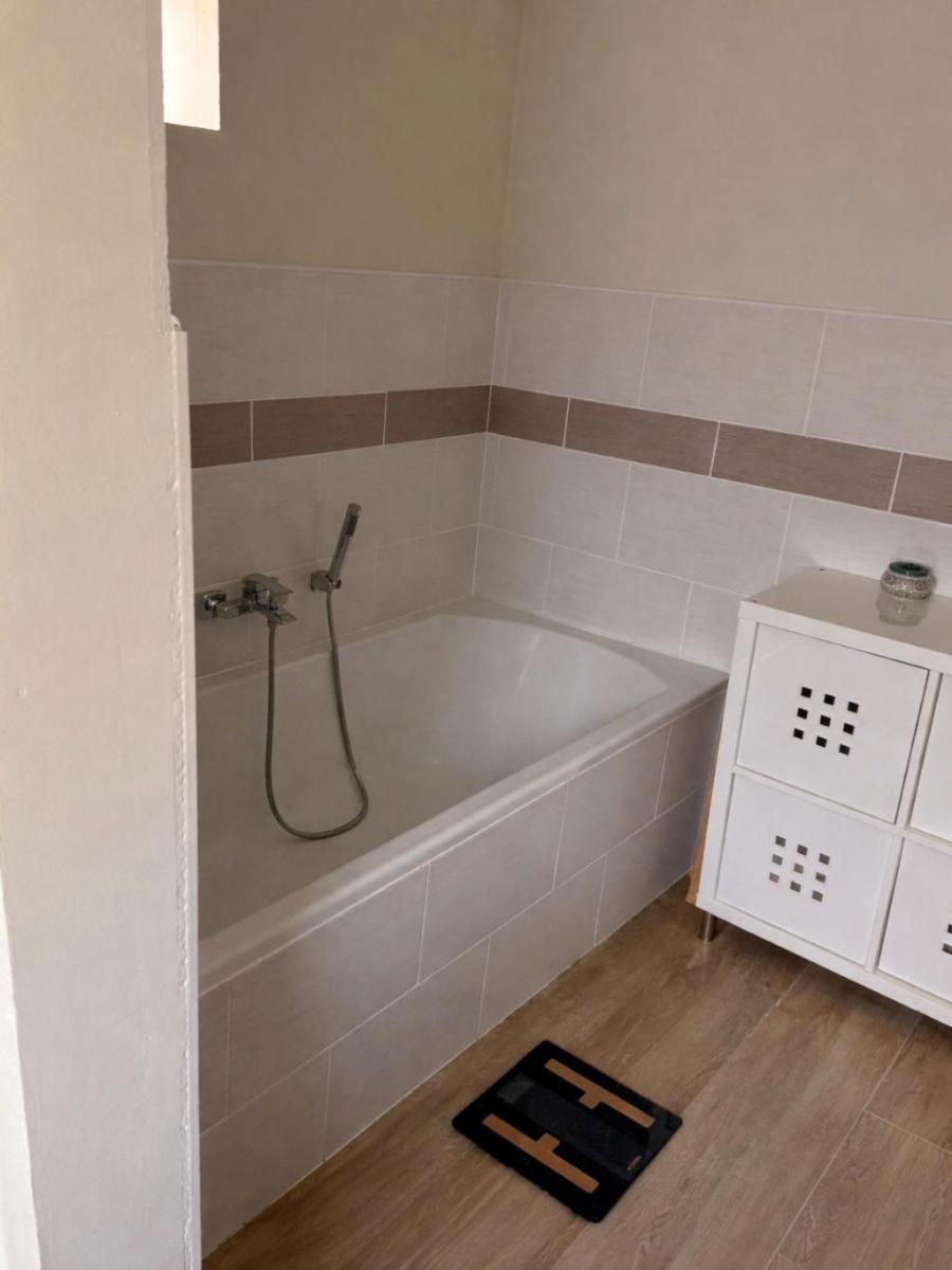 Rez-de-chaussée : Living - Cuisine équipée - Salle de bain (Lavabo double, douche italienne, baignoire) - Buanderie (en travaux) - WC séparé