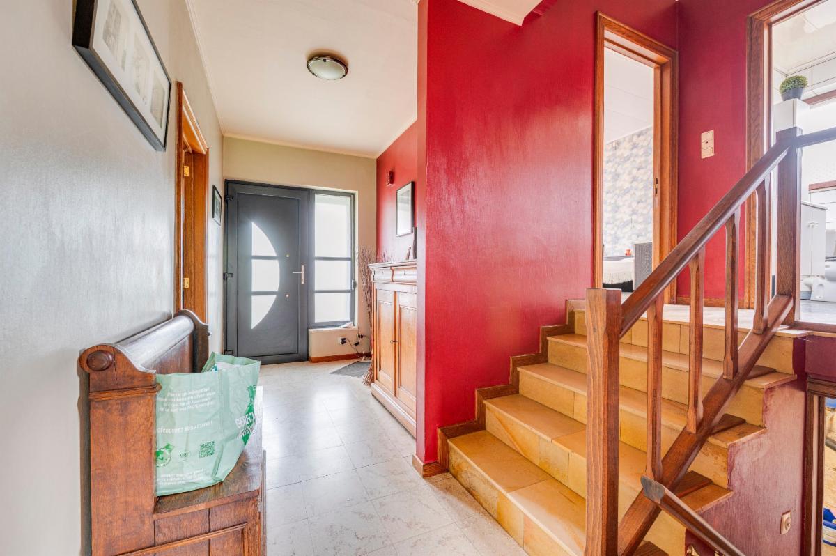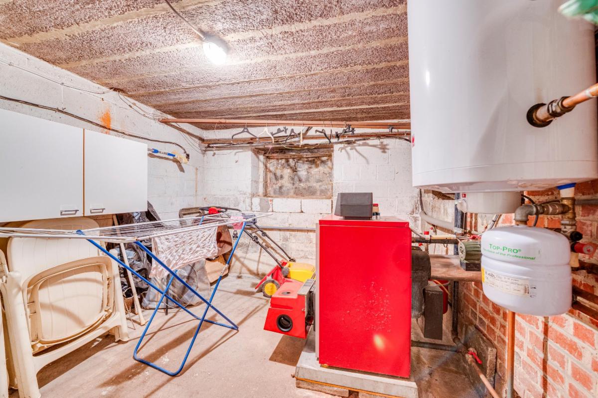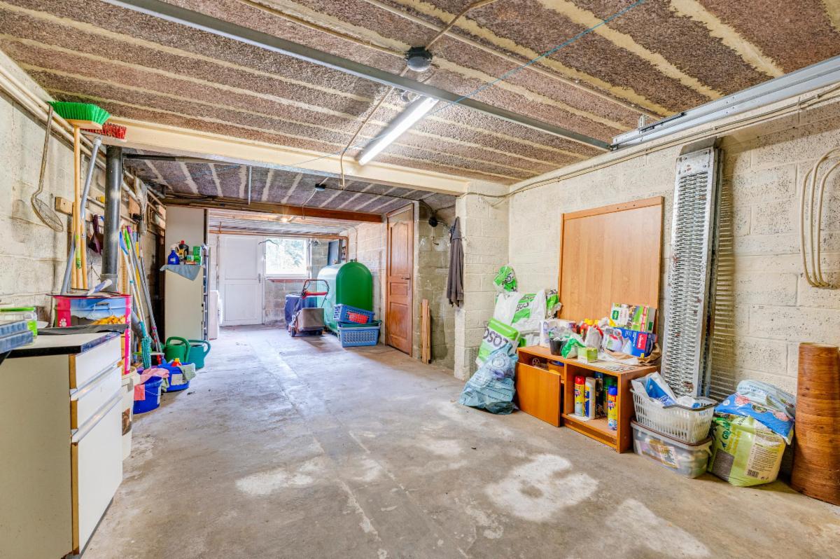 Maison 4 façades avec jardin, comprenant : * Rez-de-chaussée : hall, salon/salle à manger, cuisine, bureau * 1/2 étage : salle de bain, 2 chambres à coucher * Sous-sol : garage, 2 caves