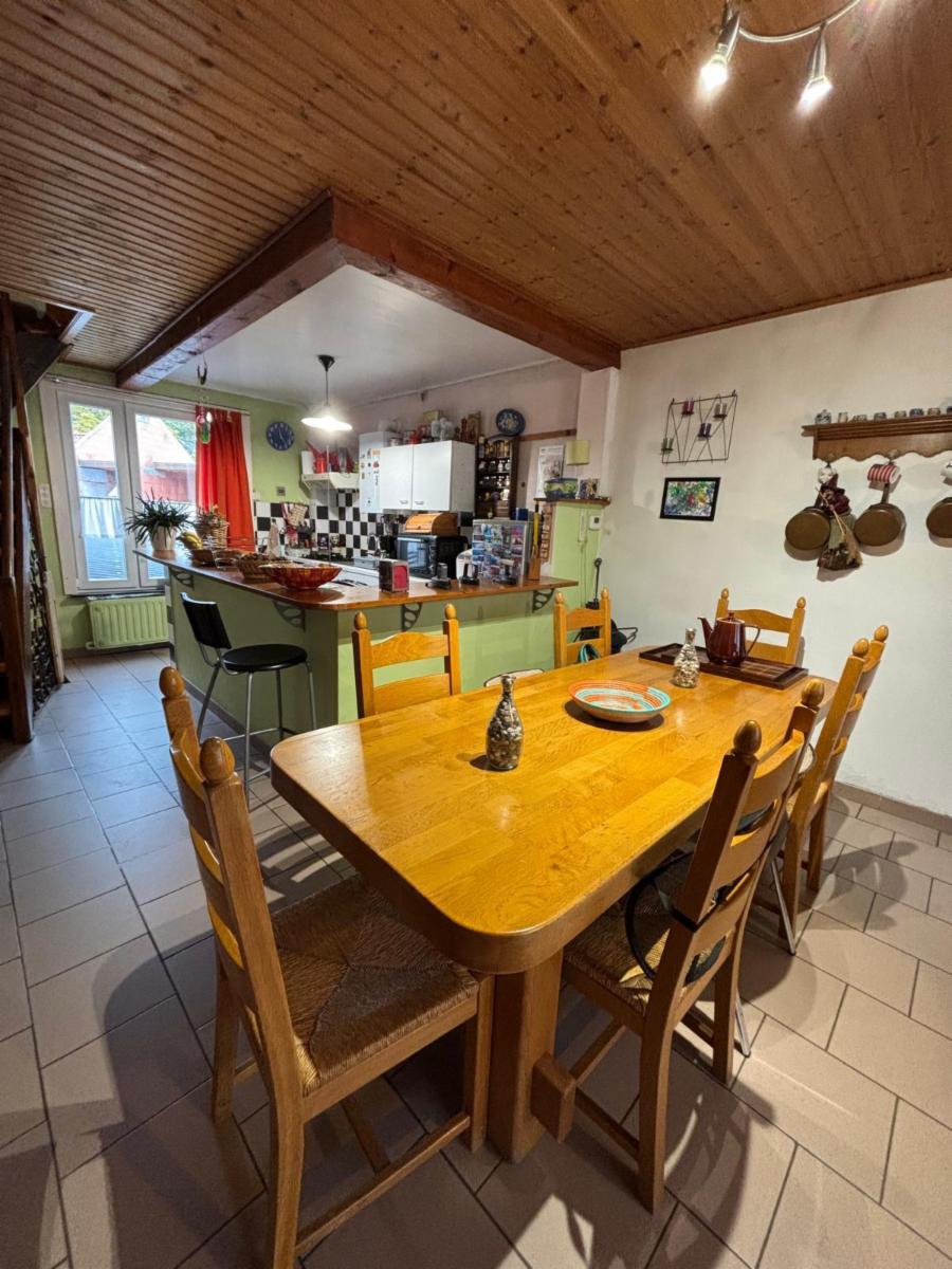 - Au premier étage : séjour, salle à manger, cuisine ouverte semi-équipée avec passe-plat.