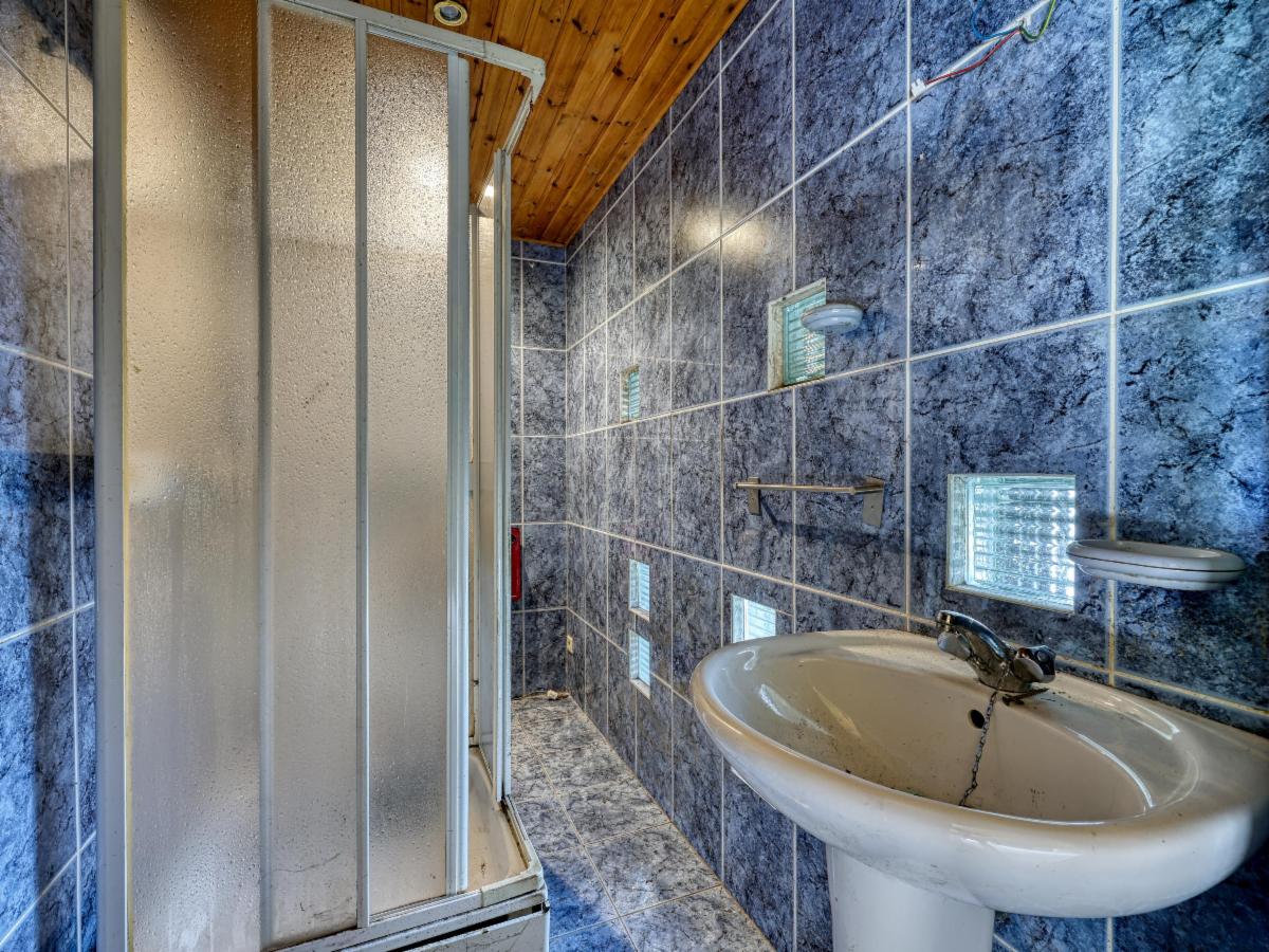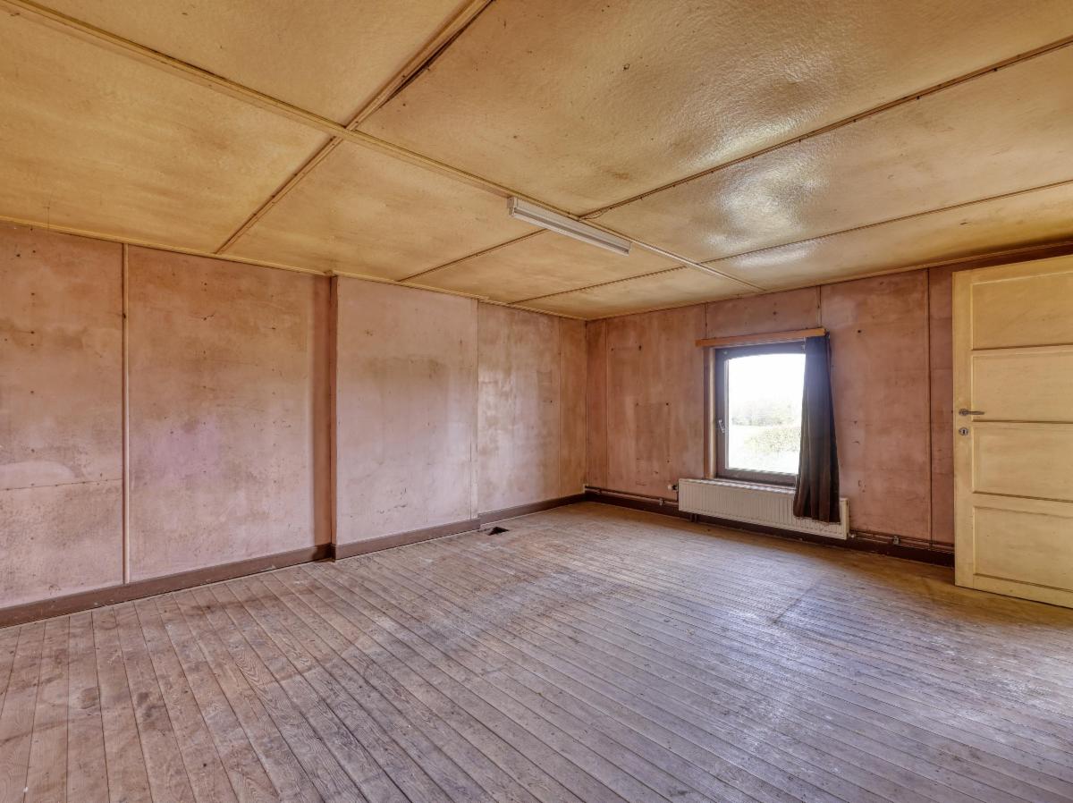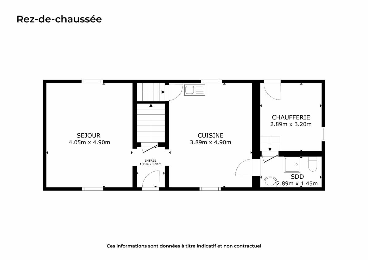 - un hall d'entrée, un séjour, une cuisine et salle à manger, une chaufferie, une salle de douches avec wc + lavabo et espace de rangement;