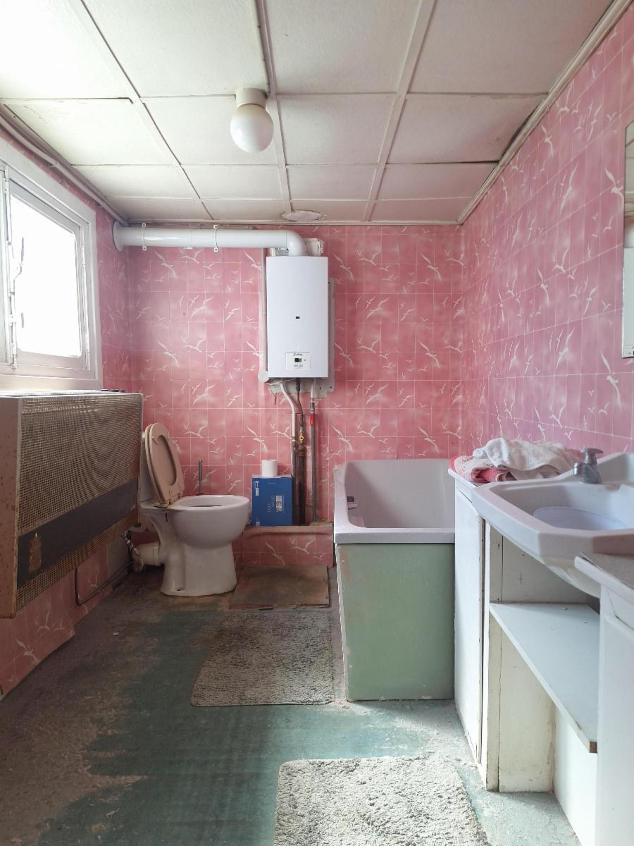 Etage : entresol : salle-de-bain d’époque, avec WC, bain, boiler.