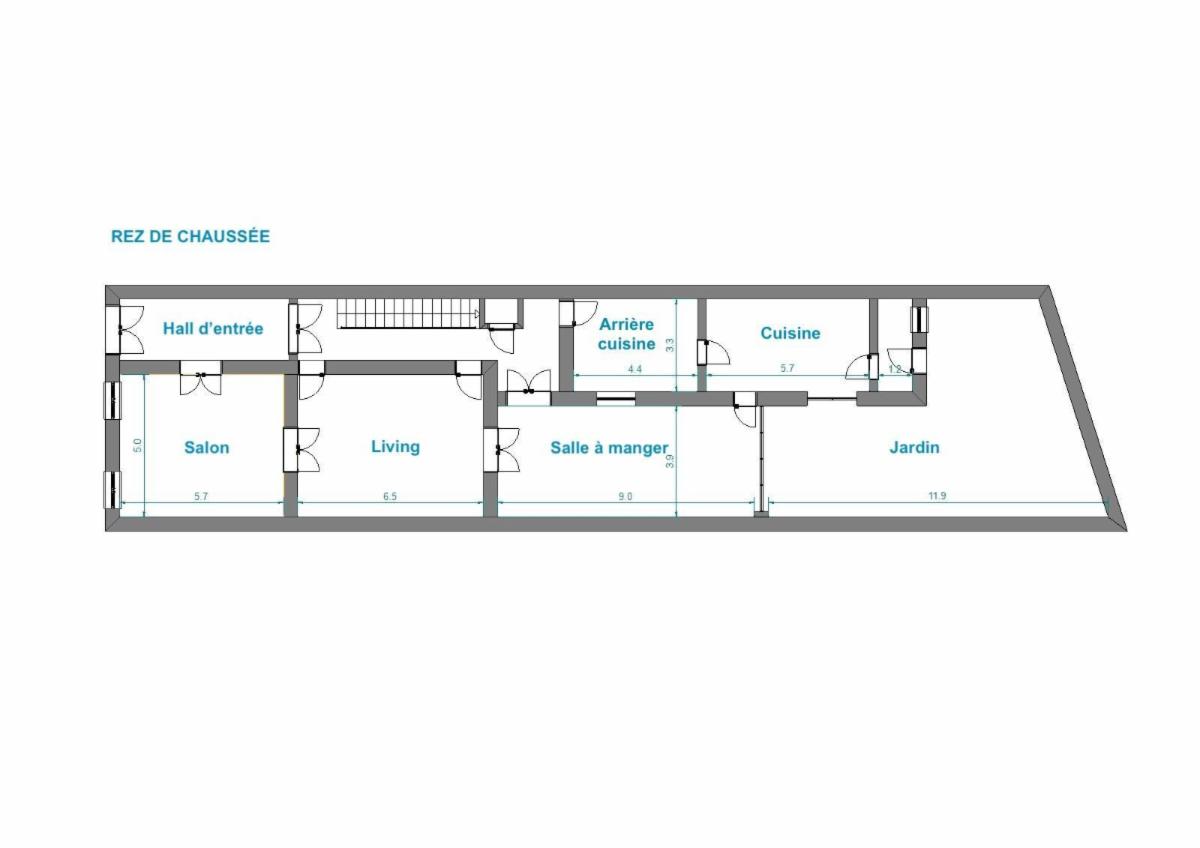 • Au rez-de-chaussée : un hall d’entrée, un salon d’environ 28 m², un living d’environ 32 m², une salle à manger très lumineuse d’environ 35 m², une cuisine, une arrière cuisine, une buanderie, un wc et un jardin.