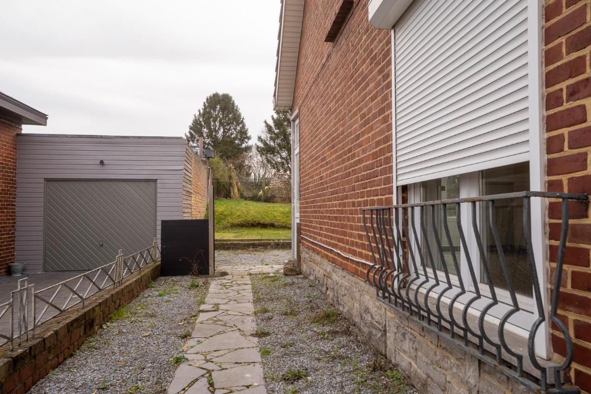 Le bien dispose d'une petite véranda, d'une cave et d'un garage avec espace de stockage et accès au jardin.