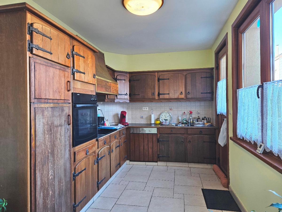 Rez-de-chaussée : un hall d’entrée, séjour, cuisine équipée, wc et garage.