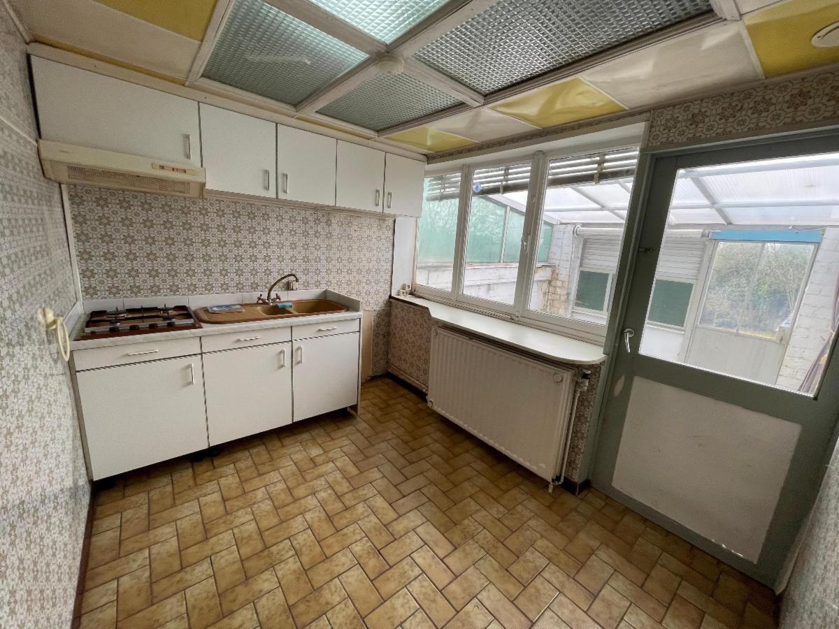 Maison d’habitation deux façades à rénover qui se compose au rez-de-chaussée un salon, une salle à manger, une cuisine, une salle de bains, une toilette, une chaufferie, un débarras ainsi qu’une pergola. À l’étage : un hall de nuit et deux chambres. Le jardin est agrémenté d’une grande remise.