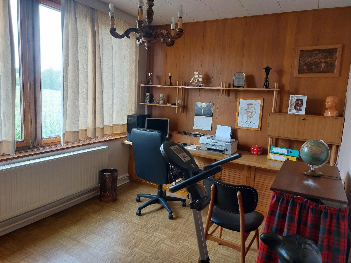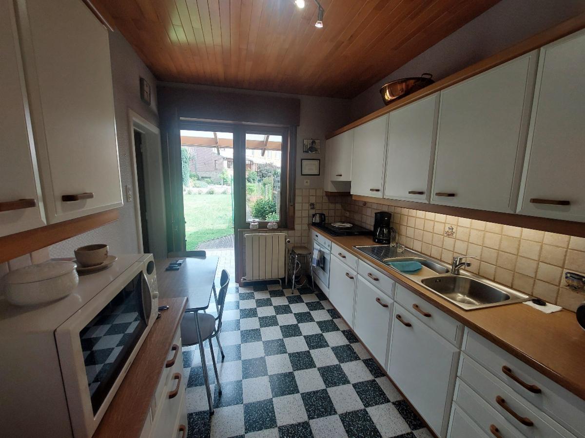 Rez-de-chaussée : hall, WC, salon, salle à manger, cuisine avec taque au gaz (4 becs).