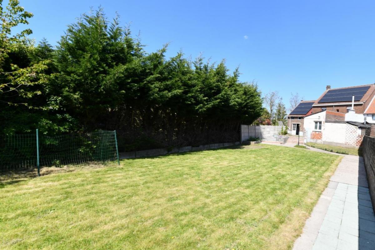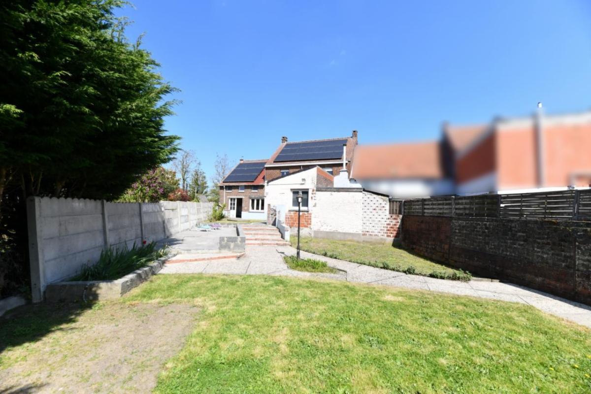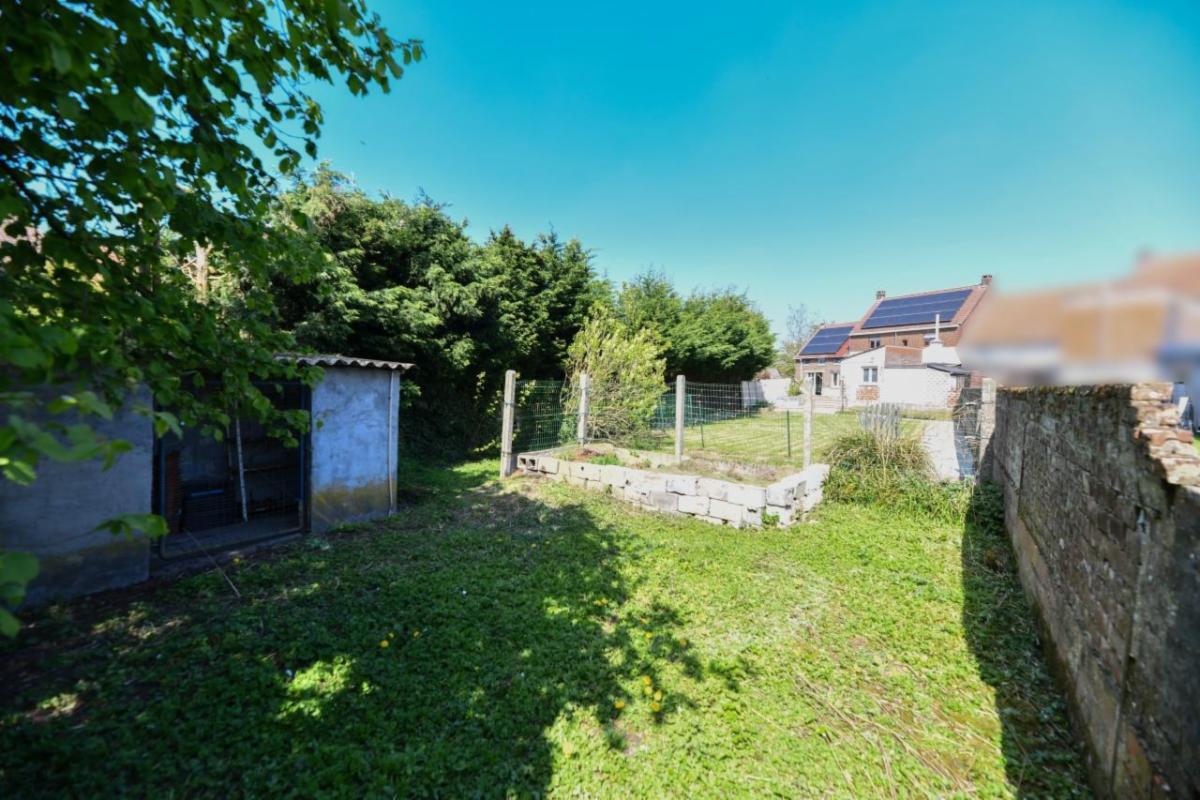 À l’extérieur : un jardin d’agrément avec poulailler (au fond) et un abri de jardin.