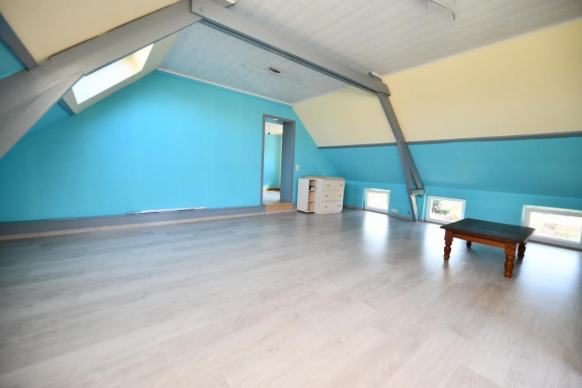 Au 1er étage : trois chambres (au niveau du palier), ainsi qu’une petite pièce donnant accès à une grande chambre pouvant être transformée en suite parentale (raccords eau disponibles), dressing ou bureau + un wc.