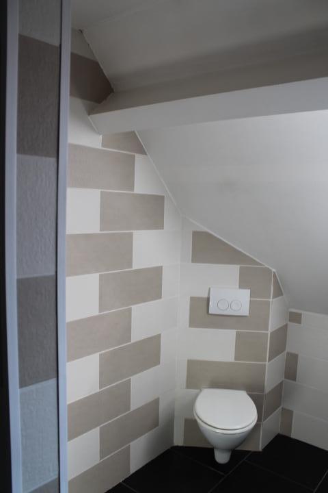 Etage: hall, 3 chambres dont une avec dressing encastré et salle de bains avec wc.