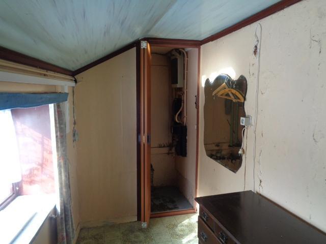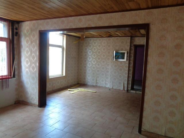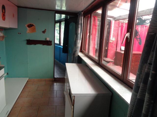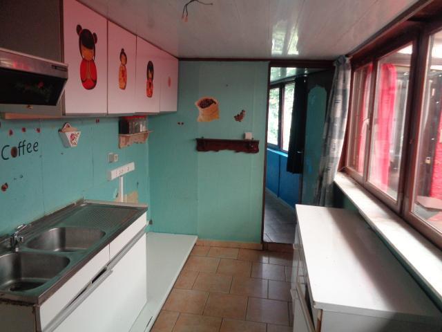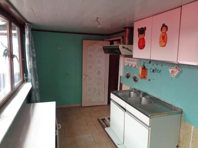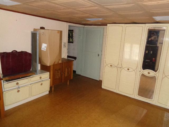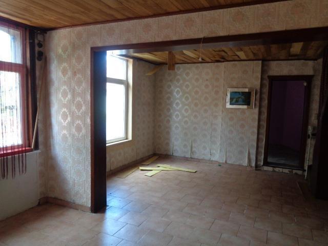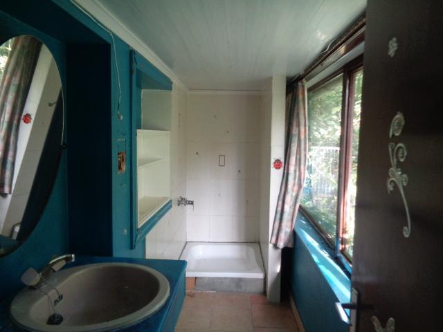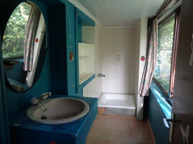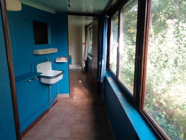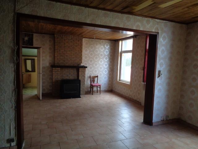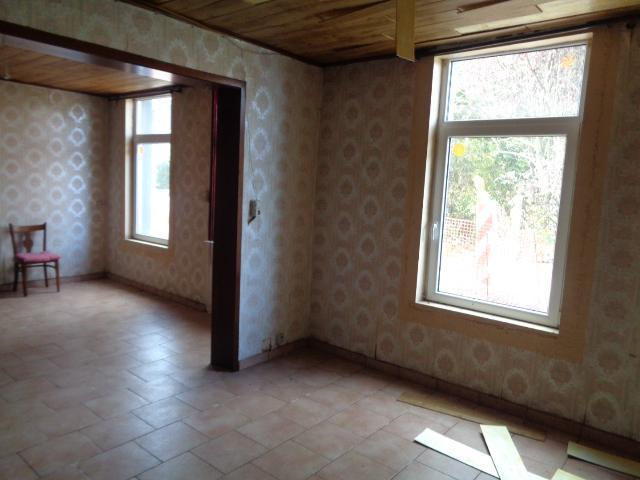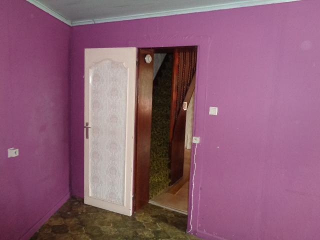 RDC : pièce d’entrée, living, cagibi avec les compteur électrique et eau, 1 petite pièce, cuisine non équipée, 1 WC, 1 salle de bains (ancienne) avec douche et évier, veranda.