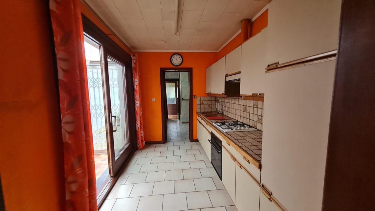 Maison d'habitation à vendre. Le bien comprend, au sous-sol : une cave ; au rez-de-chaussée : une cuisine semi-équipée, une arrière-cuisine, un salon, une salle à manger, une salle de bains, un WC, une buanderie et une véranda ; à l’étage : deux chambres, un WC, un grenier aménageable.