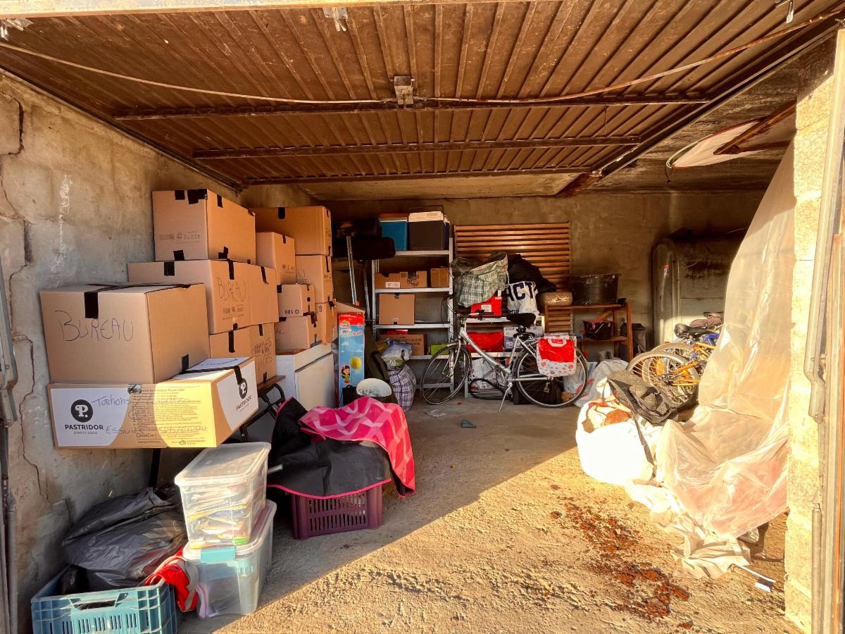 A l'extérieur: grand garage à rue, cour, terrasse et jardin orienté plein sud.