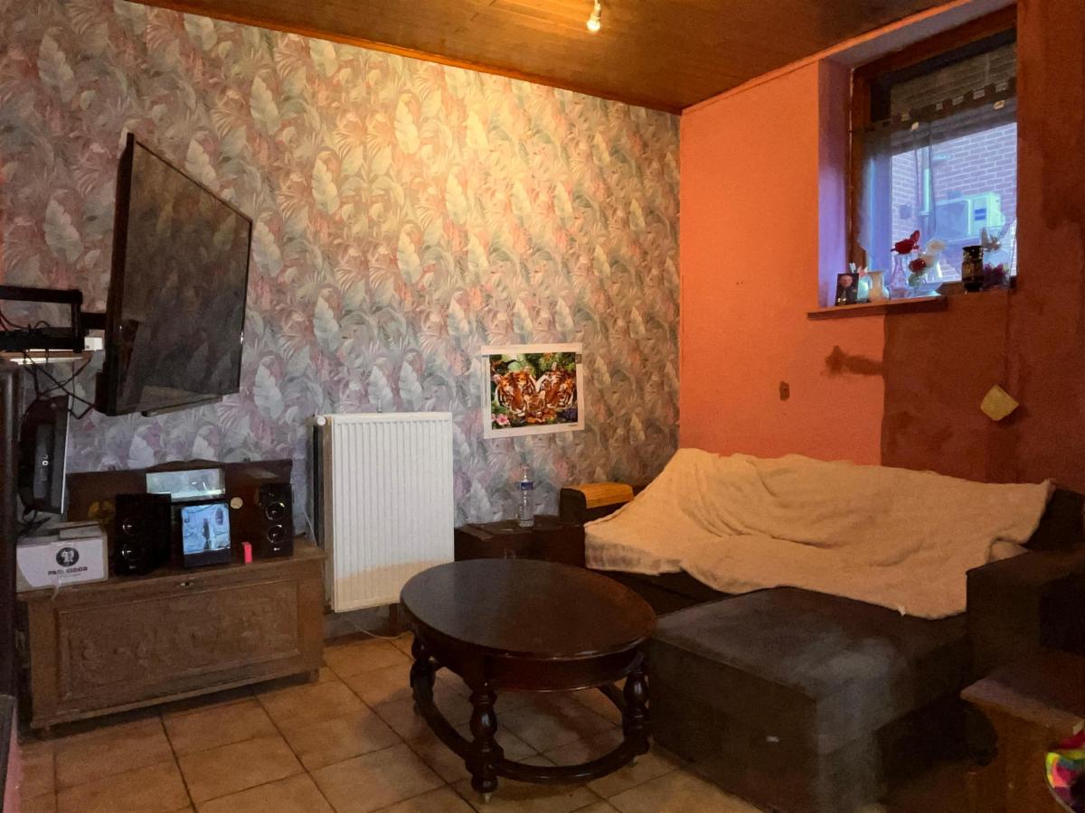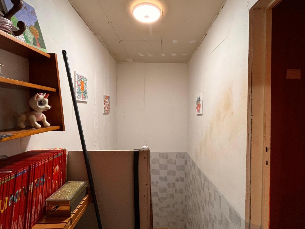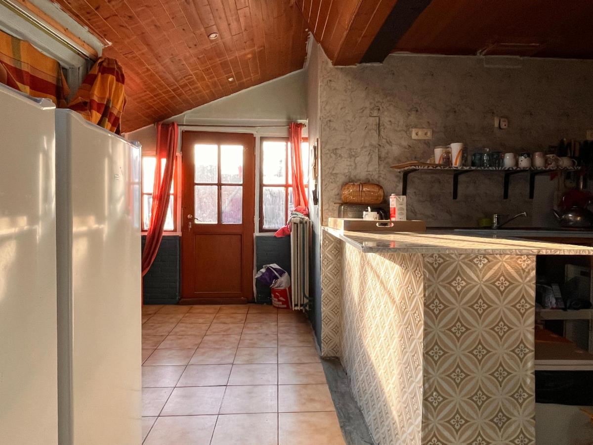 RDC: hall d'entrée, débarras, salle à manger et salon, cuisine avec accès à l'extérieur, garde-manger, salle de bains (lavabo, douche et WC) et buanderie