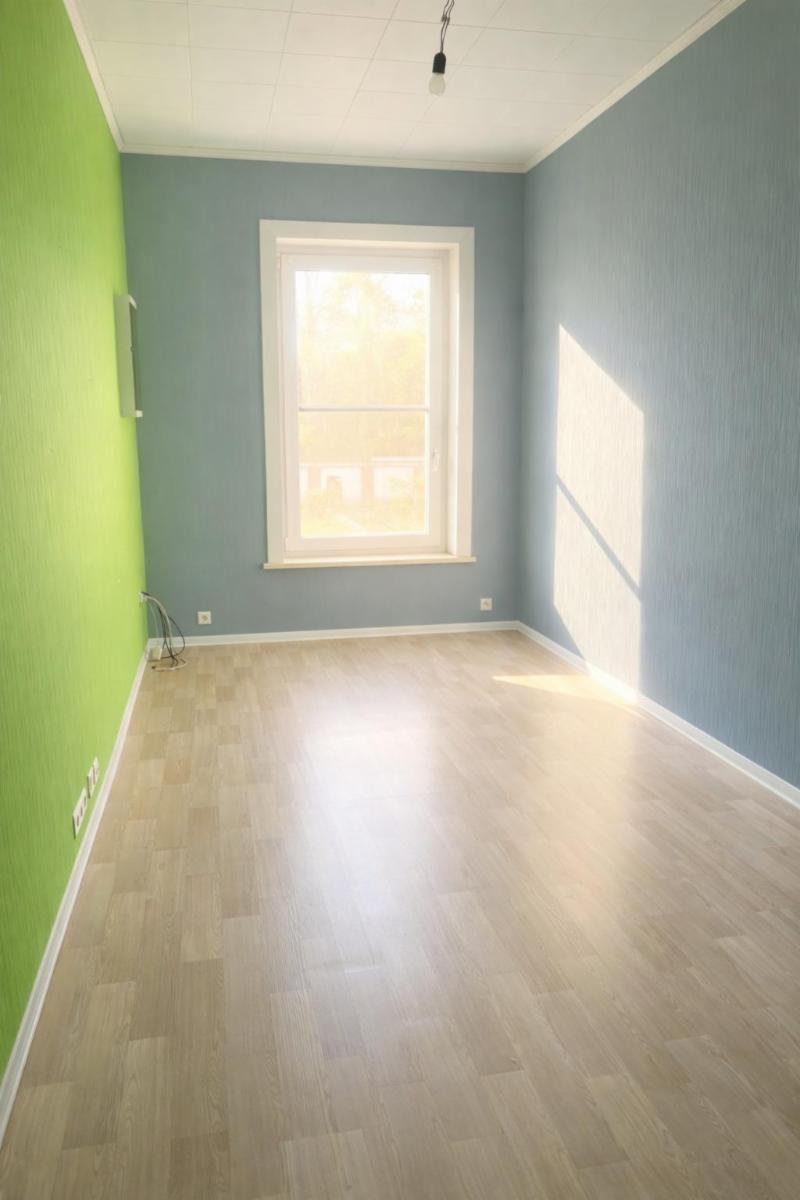 Rez-de-chaussée: Salon, salle à manger, cuisine équipée, salle de bains avec WC.