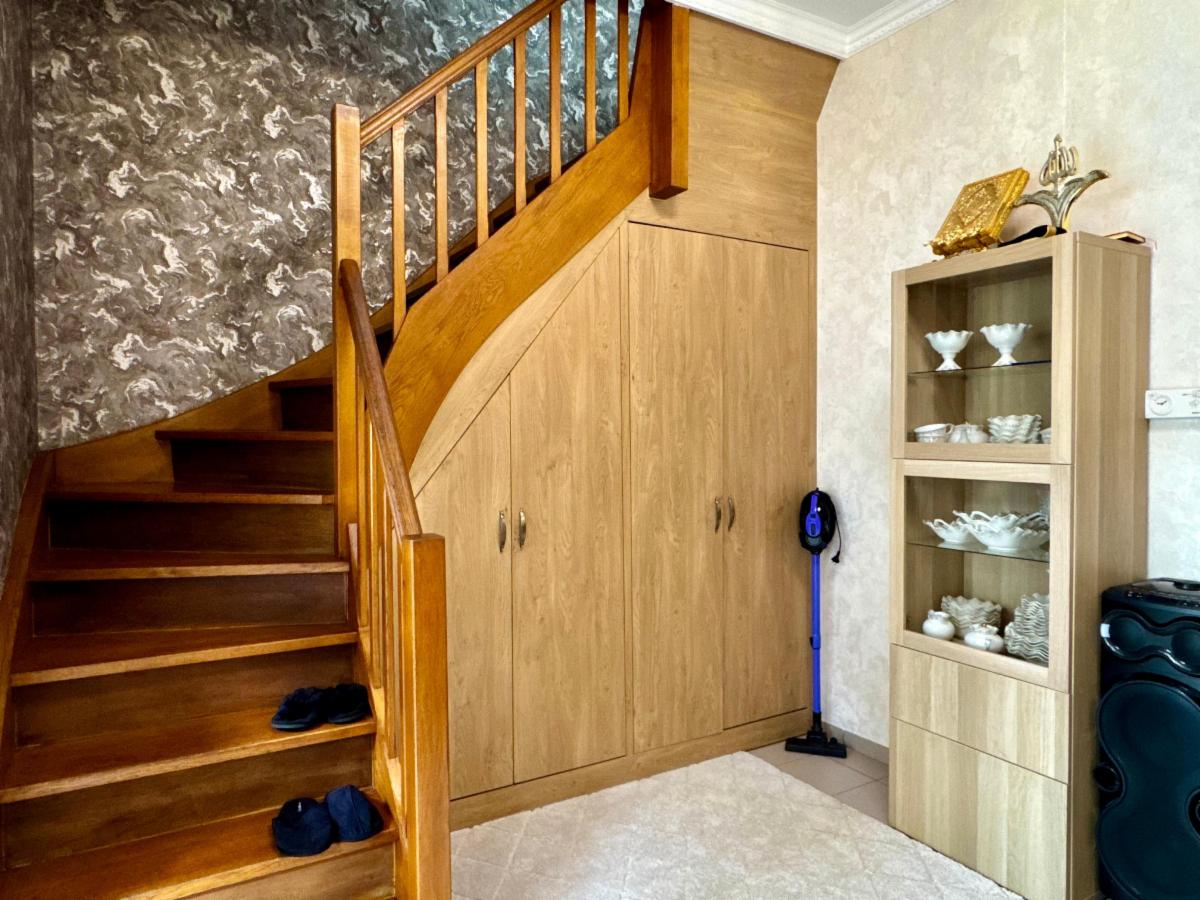 Nous vous proposons à la vente cette charmante maison mitoyenne en très bon état. Elle comprend au rez-de-chaussée un salon lumineux, une cuisine entièrement équipée, ainsi qu’une terrasse couverte donnant sur un jardin. Le premier étage dispose d'une chambre spacieuse, d'une salle de bains et d’une buanderie équipée d'une douche supplémentaire. Le deuxième étage offre deux chambres supplémentaires.