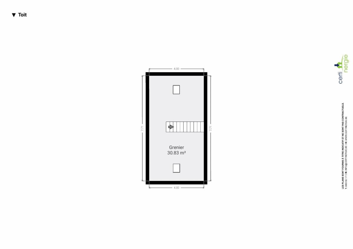 Au 2ème étage : grenier (30,83m²)
