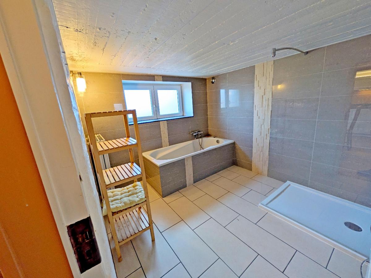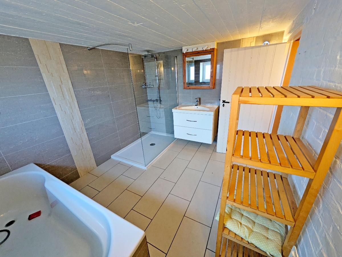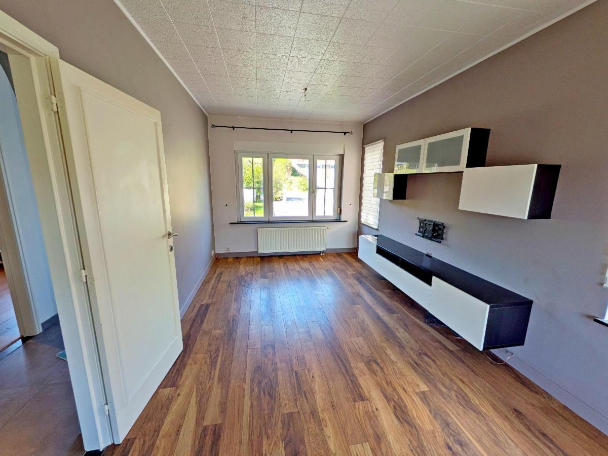 Rez-de-chaussée : hall d’entrée, salon/salle-à-manger, 2 chambres ;