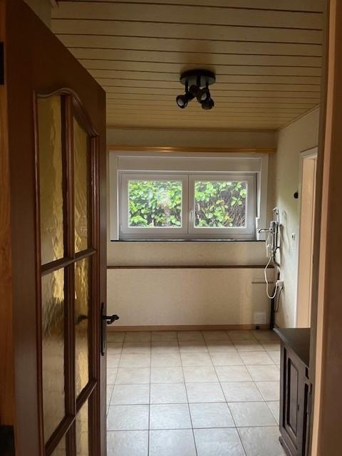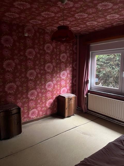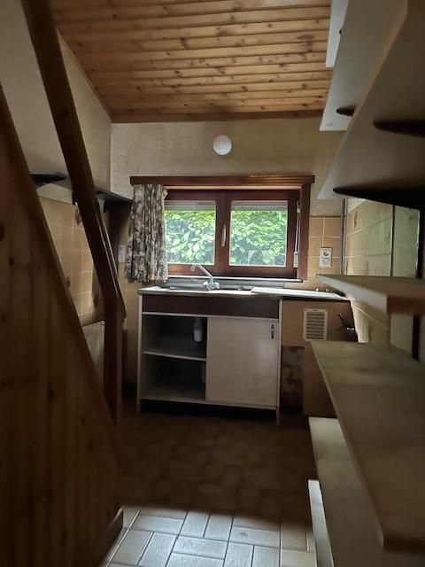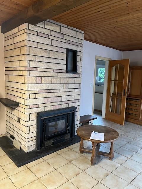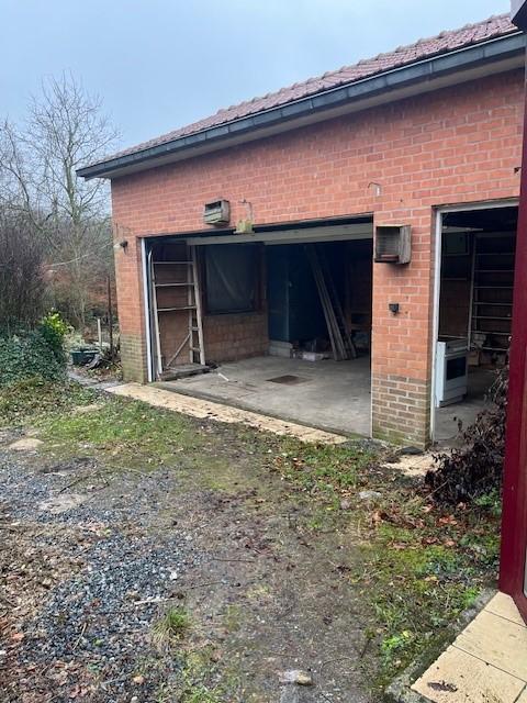 maison 4 façades sur terrain d'une contenance de 7a 66ca et un jardin d'une contenance de 5a 17ca, comprenant au rez-de-chaussée : hall d'entrée, salon (feu ouvert), salle à manger, WC, salle de bains, bureau, cuisine non équipée, 3 chambres, buanderie, terrasse avec pergola, garage 2 places. Etage : 1 chambre, coin douche, grenier sous combles. Chauffage central mazout, électricité à refaire
