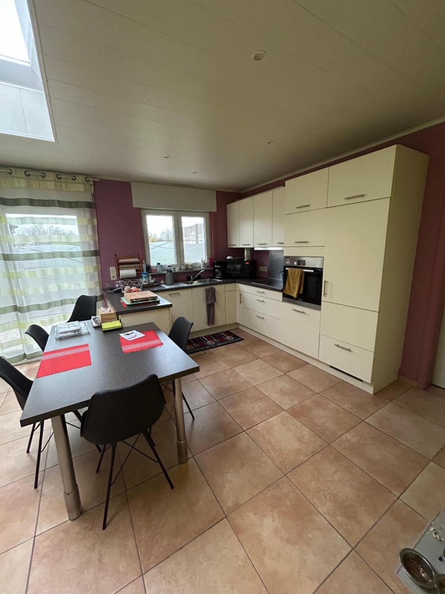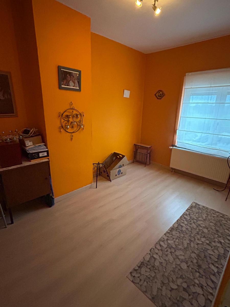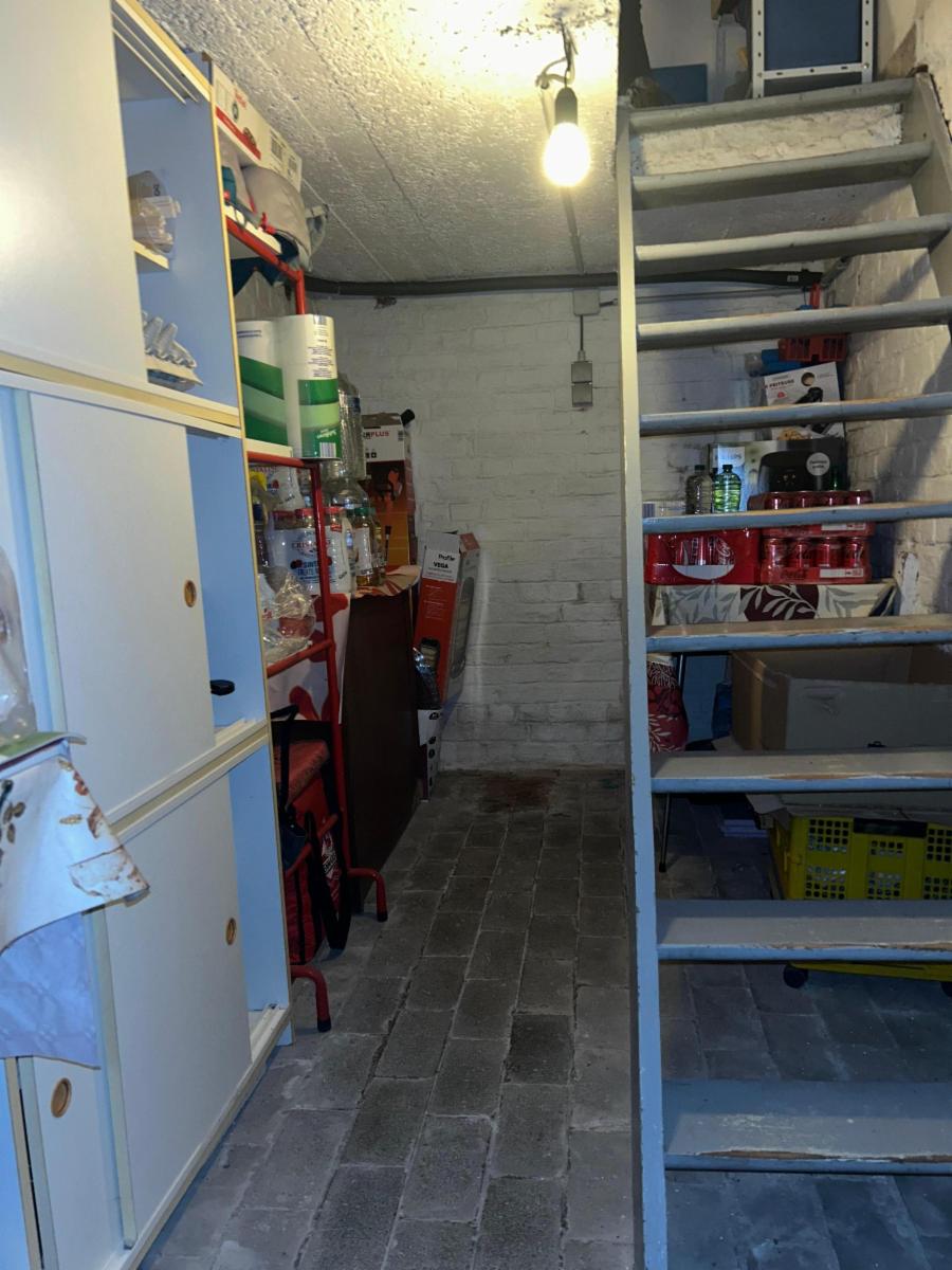 Le bien est composé au rez d'un hall qui donne vers une cuisine équipée (four, frigo, taque vitre, hotte, lave-vaisselle, évier), buanderie avec wc broyeur, salon, salle-ma-manger avec cassette au pellet, une salle-de-bain avec douche (non fonctionnelle car le panneau est fissuré), meuble évier, garage. Il y a un couloir qui mène au garage et au jardin.