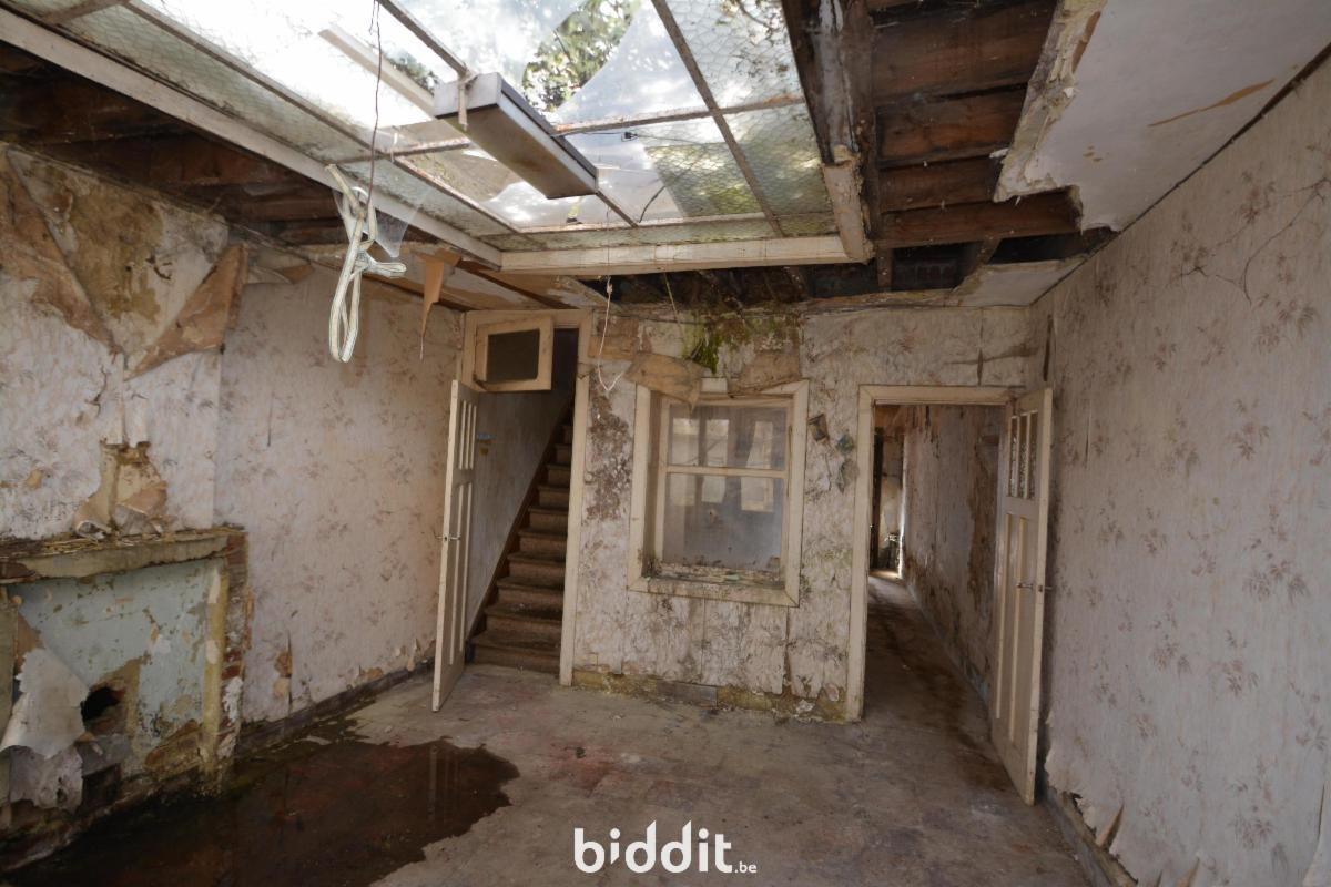 Maison mitoyenne en état de délabrement complet et ne dispose d'aucune commodité (cuisine, salle-de-bain, WC,...)