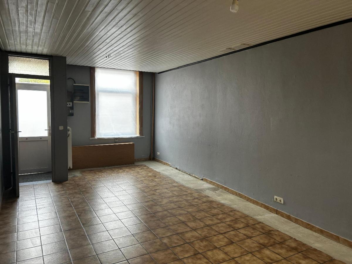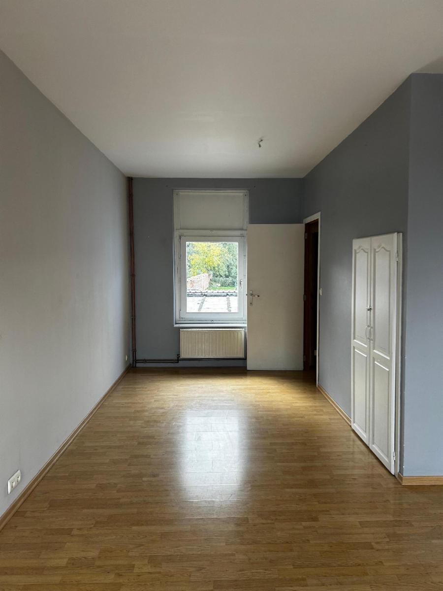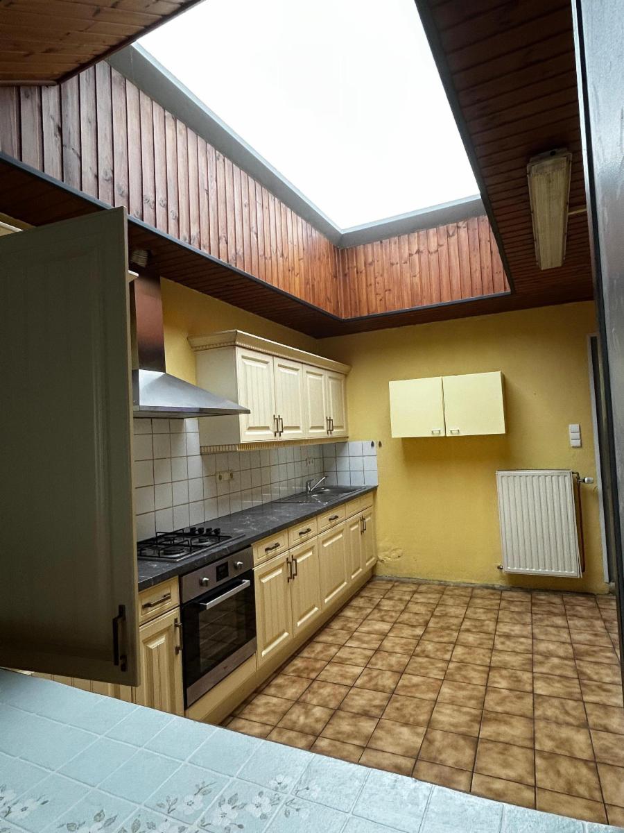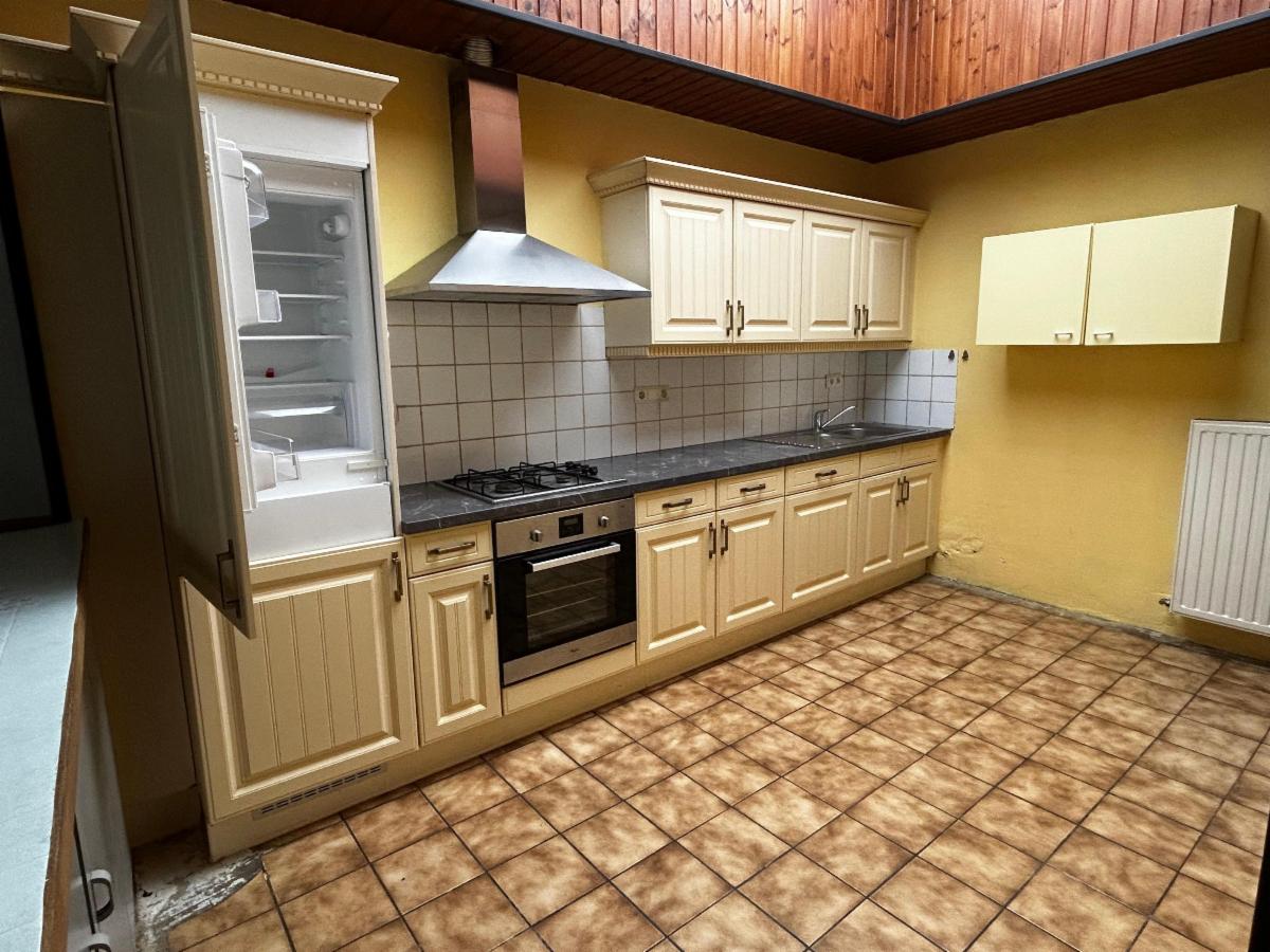 Maison 2 façades composée d'un salon-salle-à-manger, d'une cuisine équipée (taque au gaz, four, hotte, évier, frigo, congélateur), une salle-de-bain (bain, wc, meuble évier, arrivées machine à laver), une cour, un jardin, une cave, une remise.