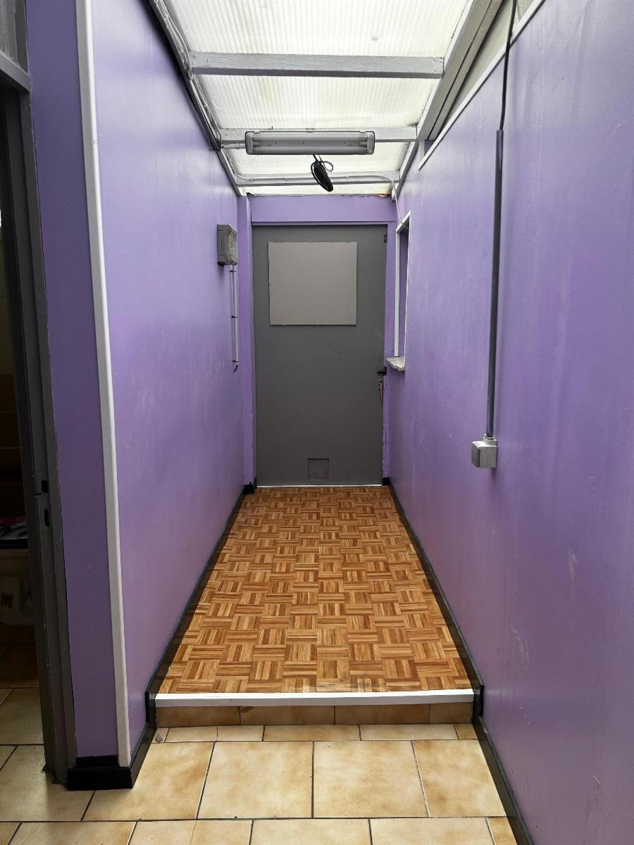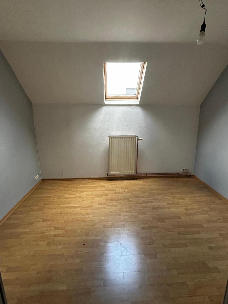 Au premier étage, il y a une chambre avec châssis en bois.