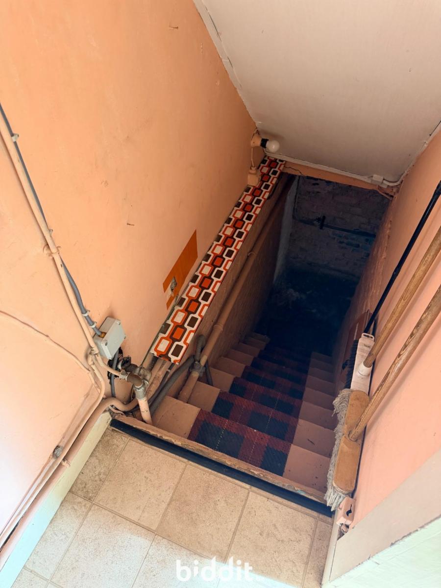 Chambre avant ouverte sur la cage d’escalier (avec compteur et tableau électrique)